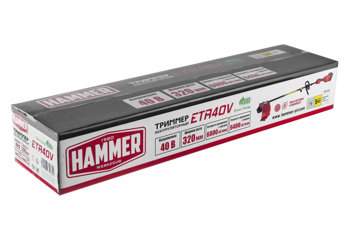 Триммер аккумуляторный Hammer ETR40V 40В 6000 об/мин шир.обработки 32см