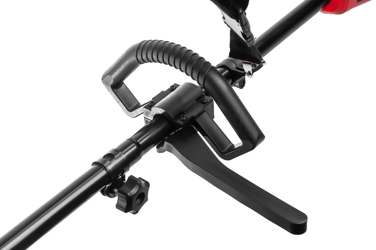 — D-образная рукоятка — вес инструмента распределяется на две руки, при этом нагрузка на плечи и спину значительно снижается;