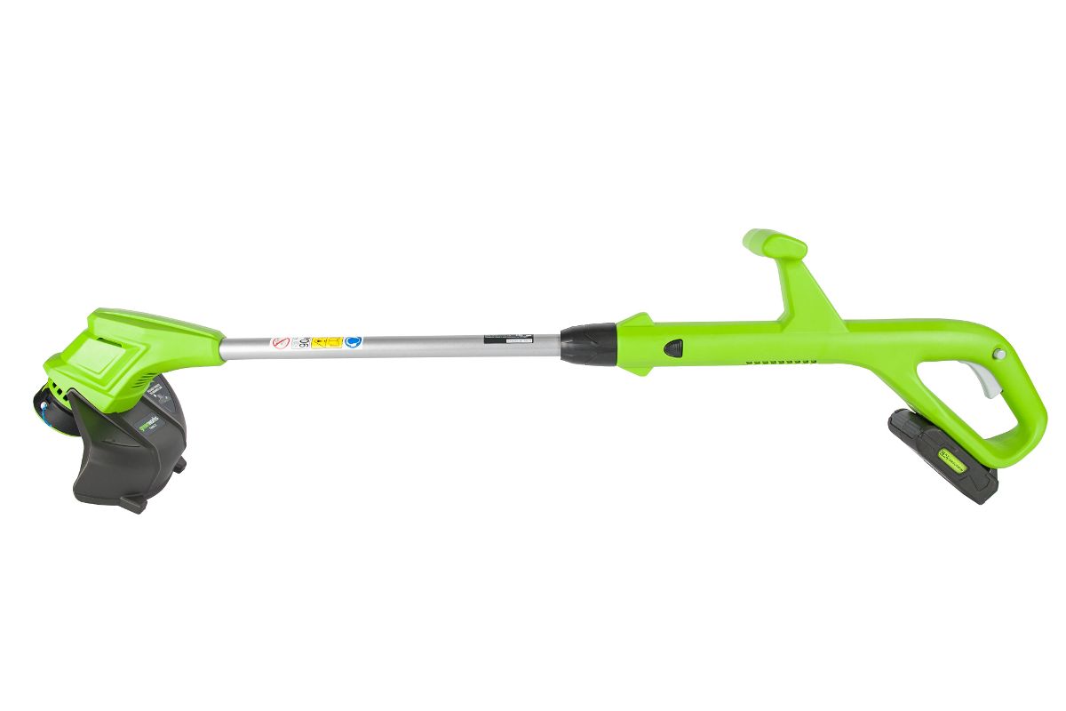 Аккумуляторный триммер GREENWORKS G24LT30 идеально подойдёт для подравнивания молодой травы на небольшом дачном участке.