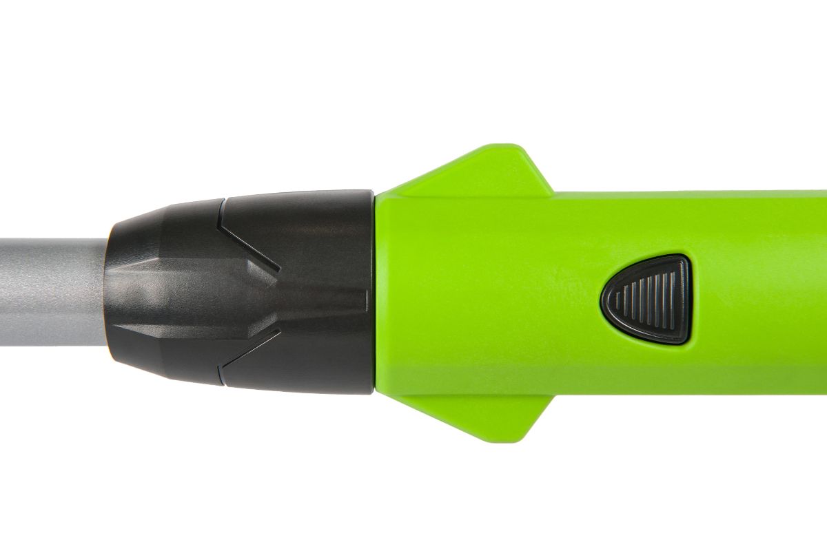 Телескопическая штанга регулируется по высоте. Удобно окашивать траву в узких местах.