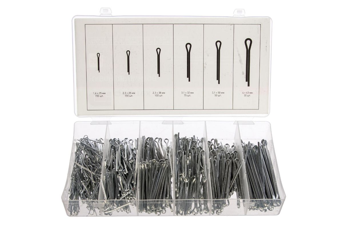 -Изделия набора шплинтов СИБРТЕХ 555 предметов 47604 изготовлены из стали;