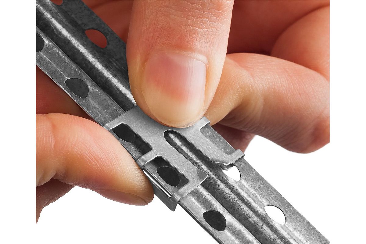 Удобство использования - крепления фиксируются непосредственно на маячковом профиле до монтажа профиля на стену. Положение маячкового профиля можно легко регулировать даже после его установки;