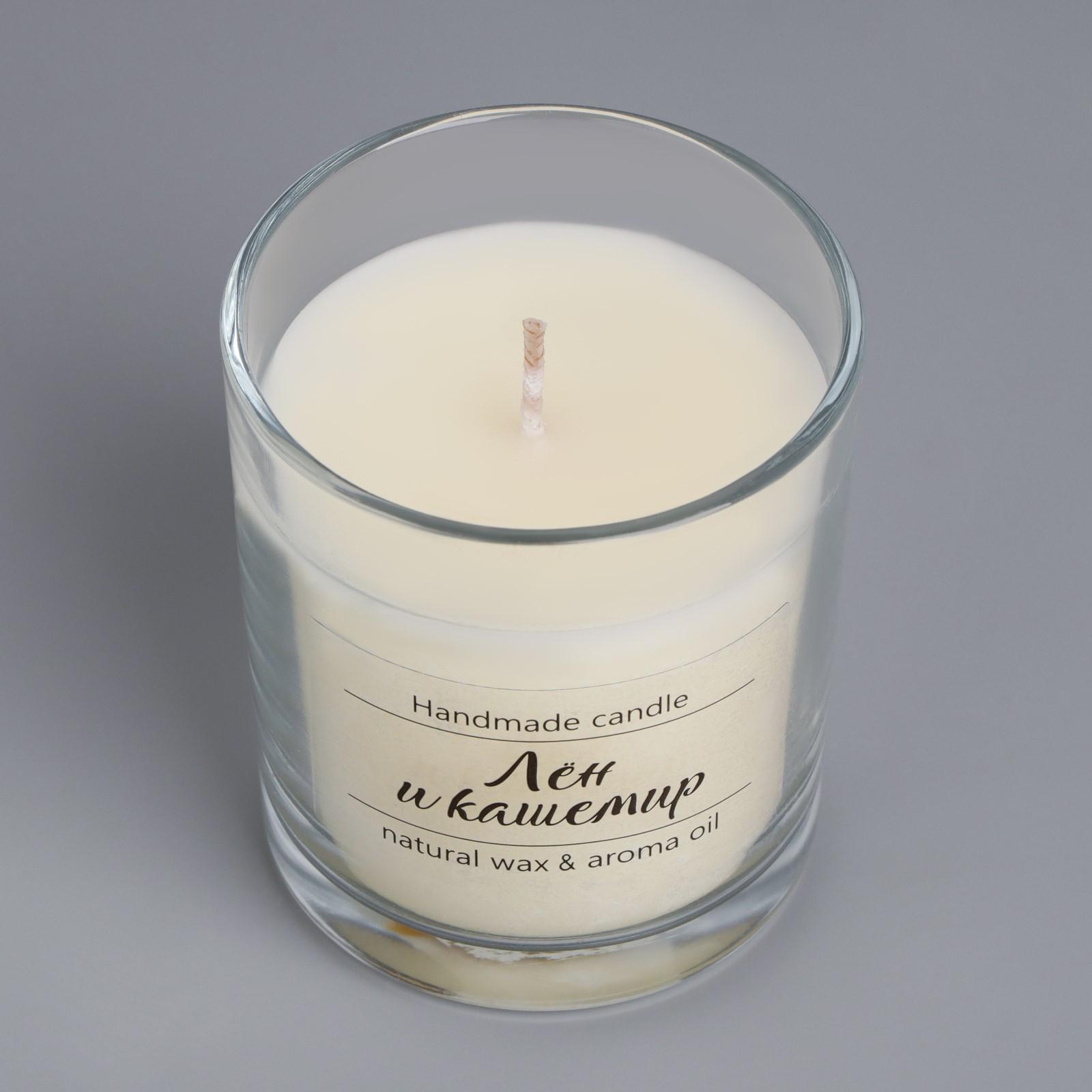 Свеча в стакане ароматизированная "Лен и кашемир", 7х7 см, 27 ч