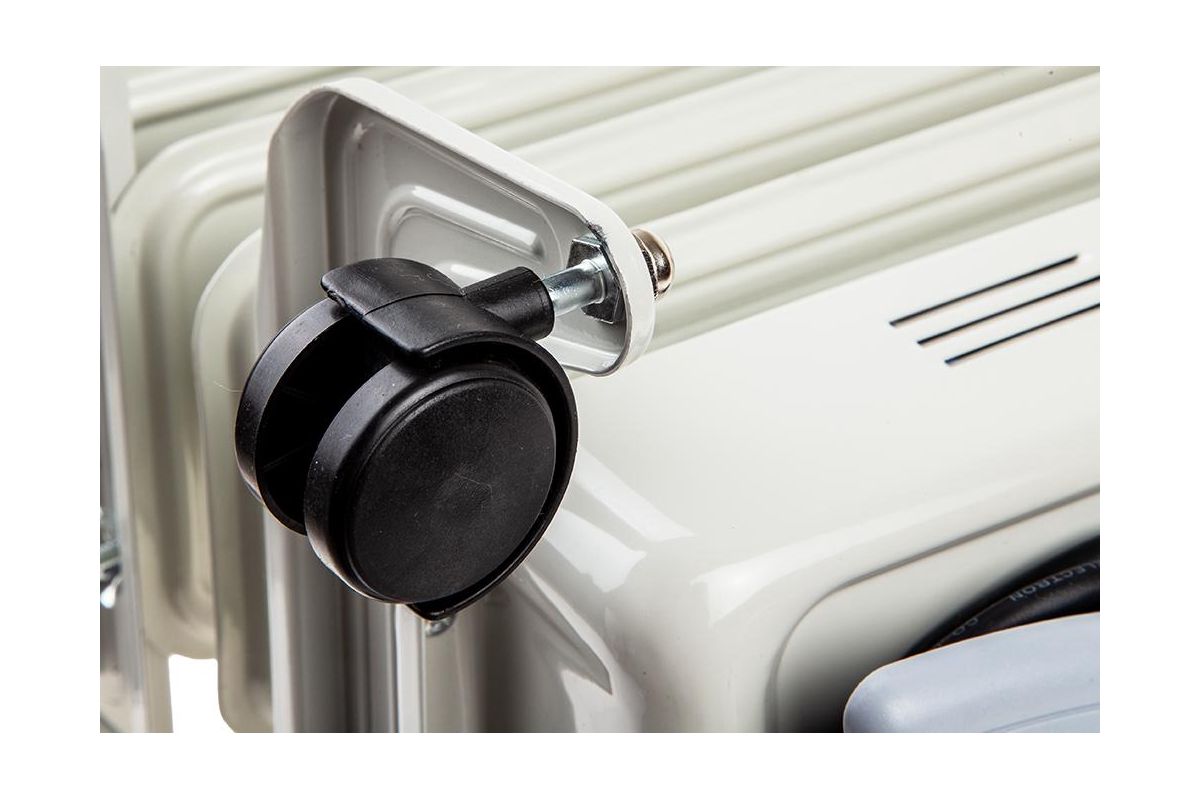 Рукоятка и ножки с колёсами упрощают перемещение. Радиатор удобно перевозить из комнаты в комнату.