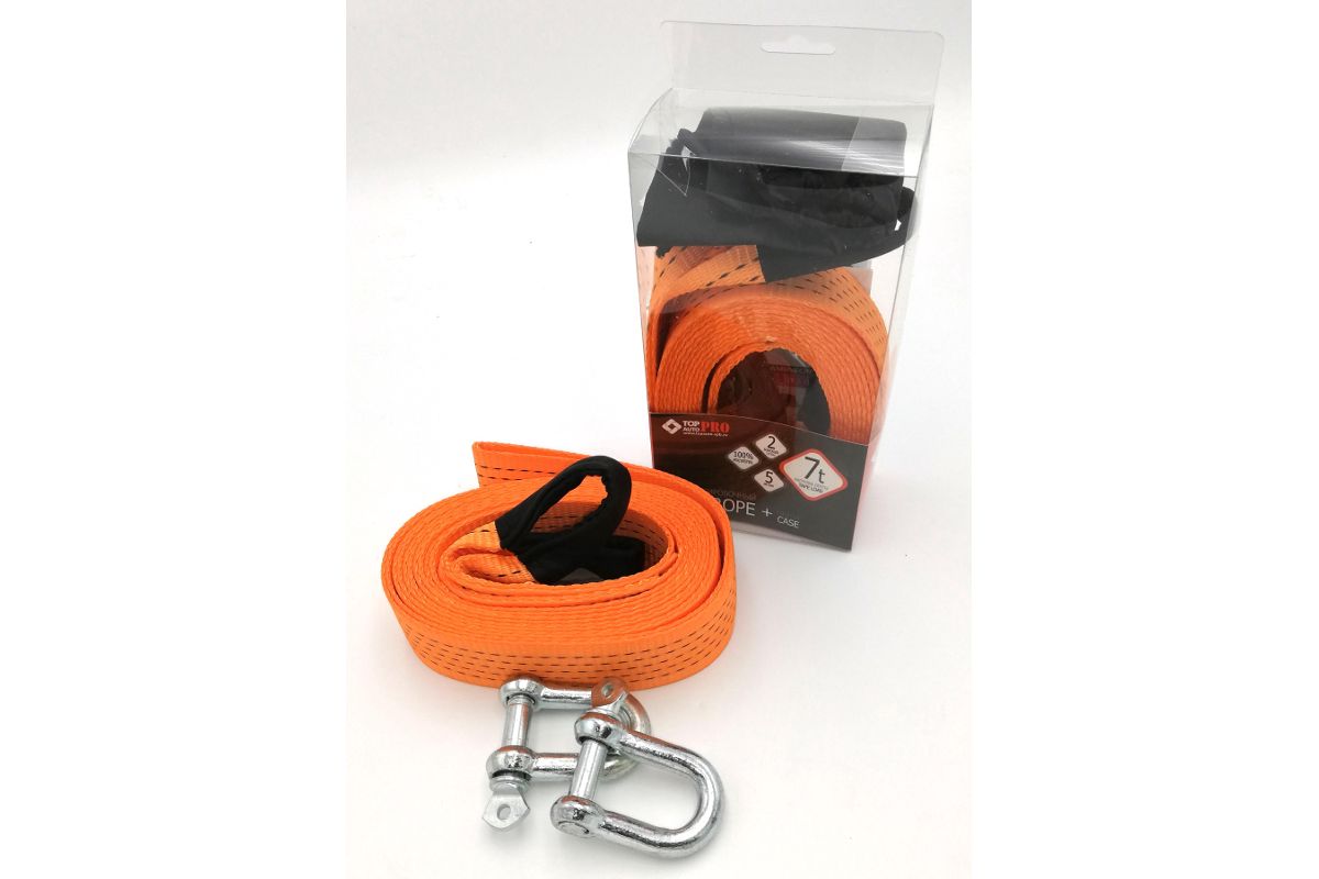Буксировочный трос ТОП АВТО РОСТРОС ПРЕМИУМ 187СКС 7 т 2 скобы М14, 5 метров, КЕЙС + СУМКА ЧЕХОЛ