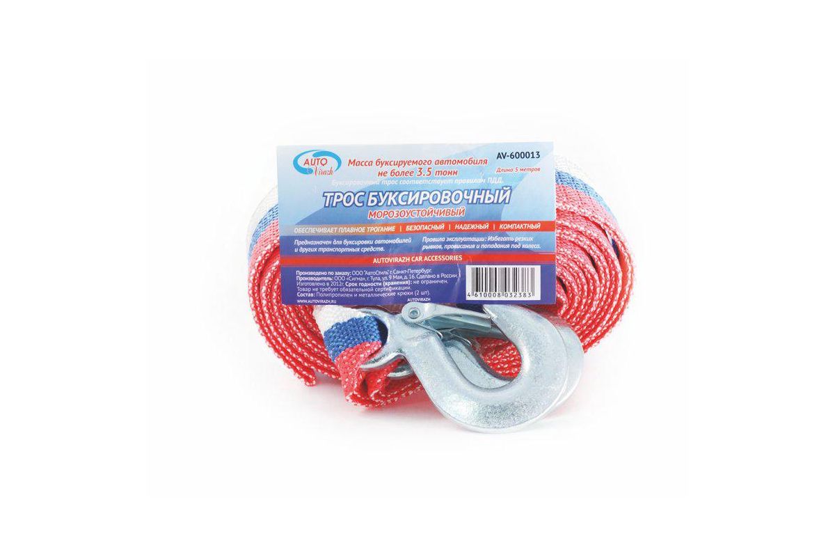 Трос AUTOVIRAZH AV-600013 буксировочный 3.5т 5м лента с 2 крюками в пакете zip lock