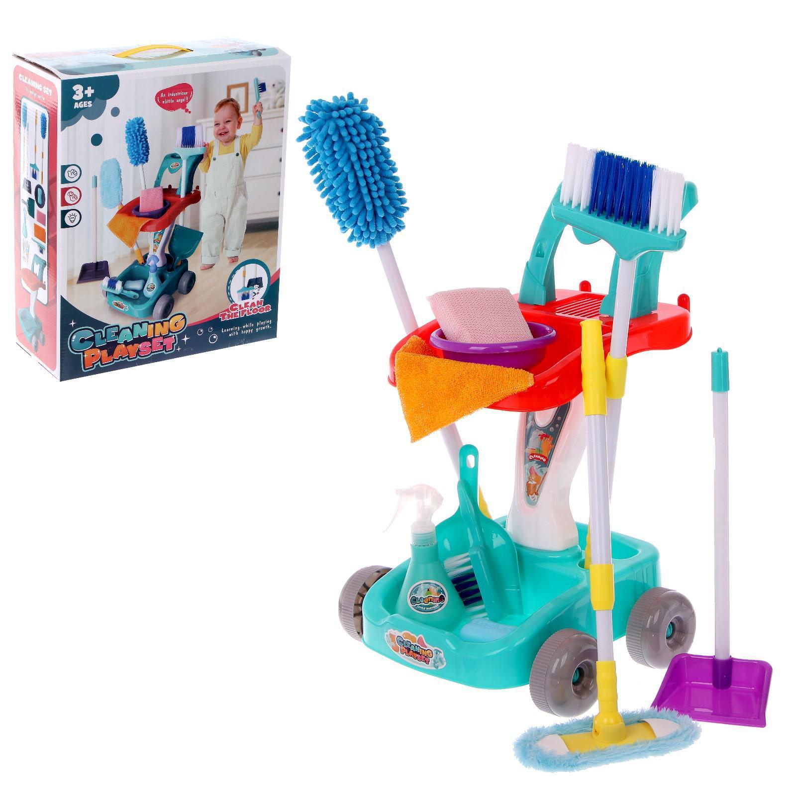 Игровой набор на колёсиках «Чистюля» научит малютку прибирать в своей комнате. С помощью тележки с моющими средствами ребёнок наведёт порядок в доме.