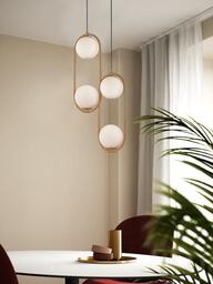 Дизайнерский подвесной светильник с матовыми стеклянными плафонами из выдувного стекла и элегантным золотым декором. Подвес смотрится динамично и ярко. Поэтому он пользуется большой популярностью у дизайнеров. Его часто можно встретить во многих проектах на Pinterest. В серии также есть подвес с 1-м матовым шаром — можно разместить несколько подвесов на разной высоте и наслаждаться воздушностью, и легкостью композиции.