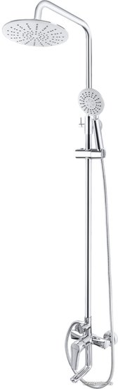 - Комплектация верхний душ, штанга, ручной душ (лейка), держатель лейки, шланг, смеситель, излив для ванны
