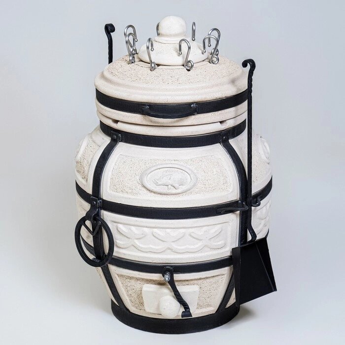 Тандыр Охотник c откидной крышкой, H-73 см, D-50 см, 8 шампуров, кочерга, совок