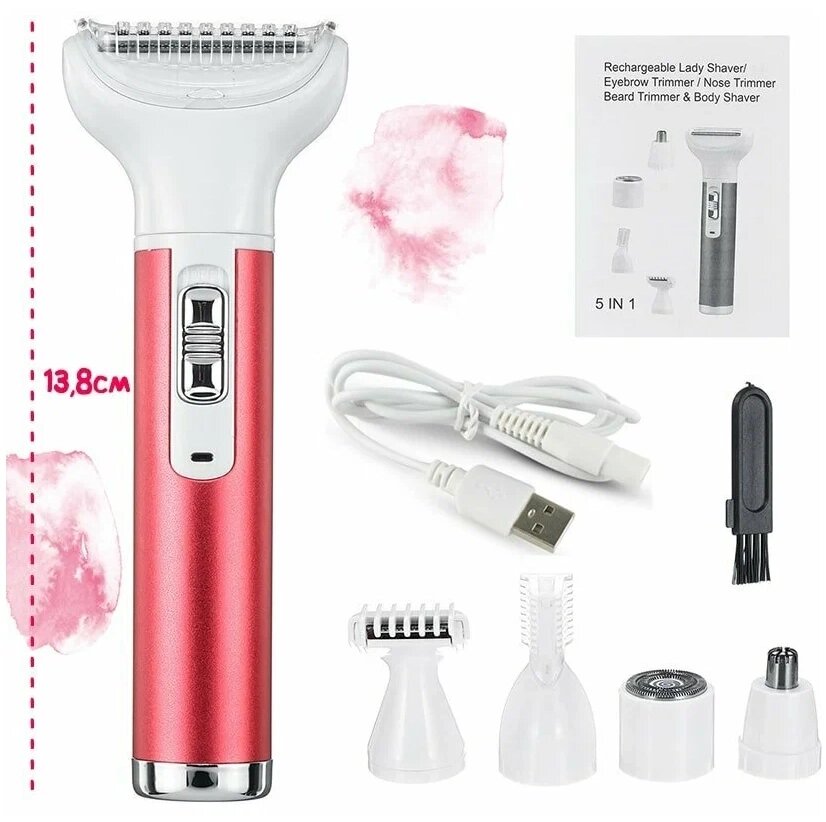 Женский набор для удаления волос 5 в 1 Portable Mini Shaver XD-3011 (триммер, эпилятор, бритва, уход за лицом)