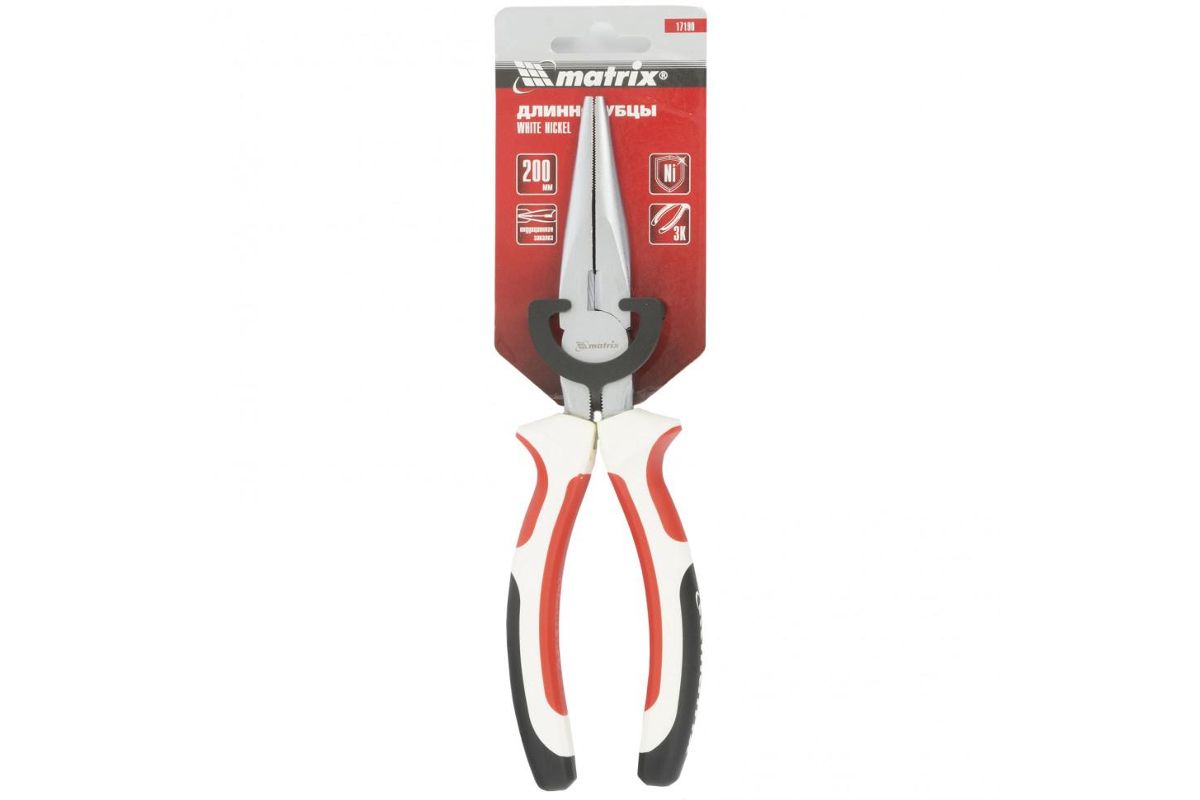 Длинногубцы MATRIX 17190 white nickel 200мм прямые никелированные трехкомпонентные рукоятки