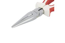 Длинногубцы предназначены для широкого спектра слесарных и монтажных работ (захвата и удержания предметов различной формы, а также перекусывания проводов и проволоки).Инструмент имеет никелевое покрытие, что препятствует образованию коррозии.Трехкомпонентные рукоятки эргономичной формы с широкими упорами удобны в работе.