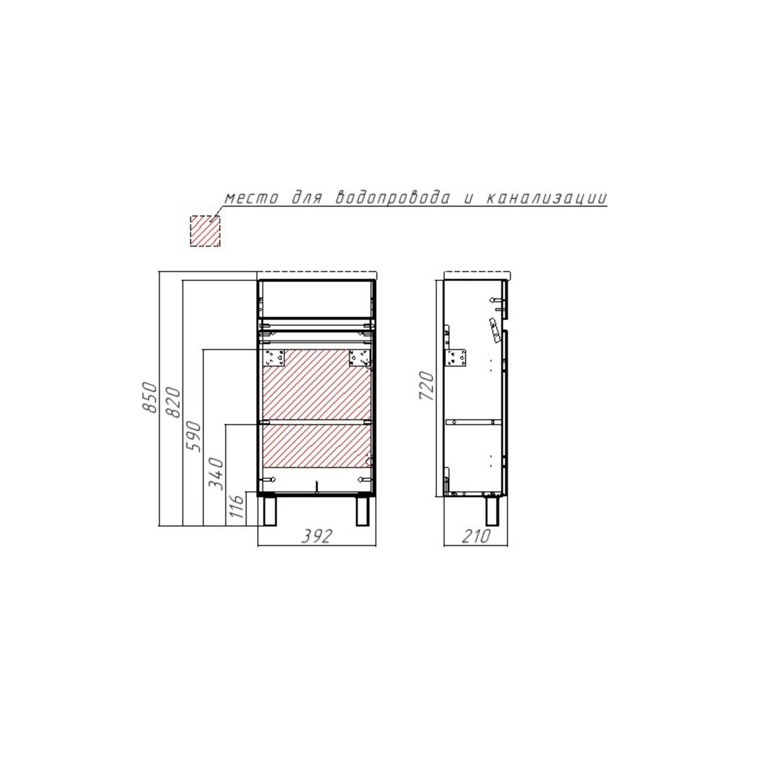• Размер (Длина × Ширина × Высота) 21 см х 39,2 см х 82 см