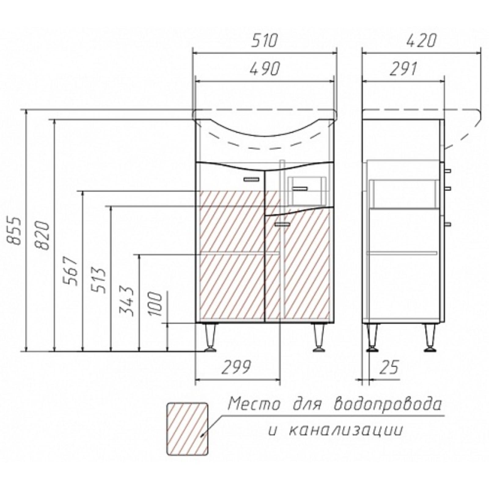 Тумба Волна с верхним ящиком В1 АЙСБЕРГ под раковину Уют 50