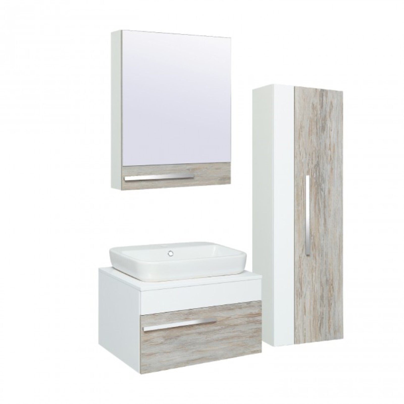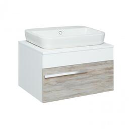 Благодаря универсальному отверстию на столешнице тумба может комплектоваться различными вариантами накладных раковин: модель «Caspia» 60 TM Cersanit с вместительной чашей овальной или квадратной формы или раковина «Гамма» 56 ТМ Kirovit c глубокой чашей и высокими бортиками, которые отражают современные тренды в дизайне.