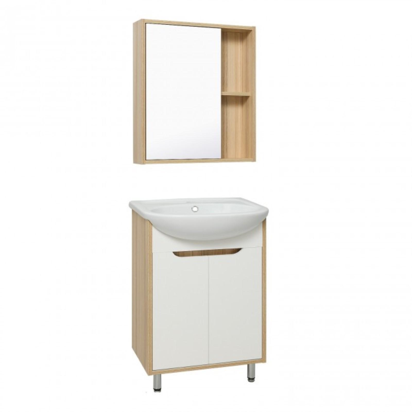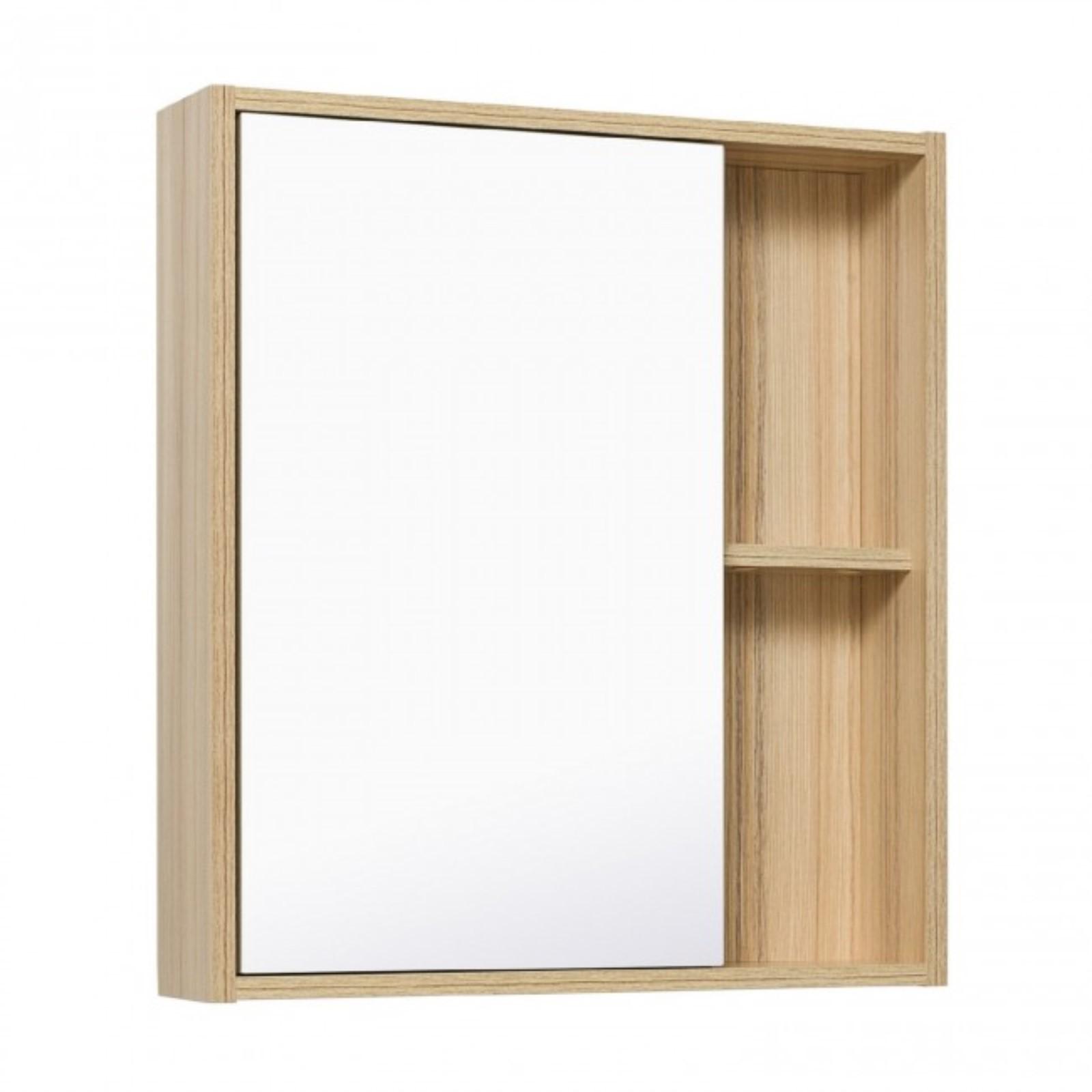 Зеркальный шкаф без подсветки с одной распашной дверкой и открытыми полками (слева или справа, зависит от установки).