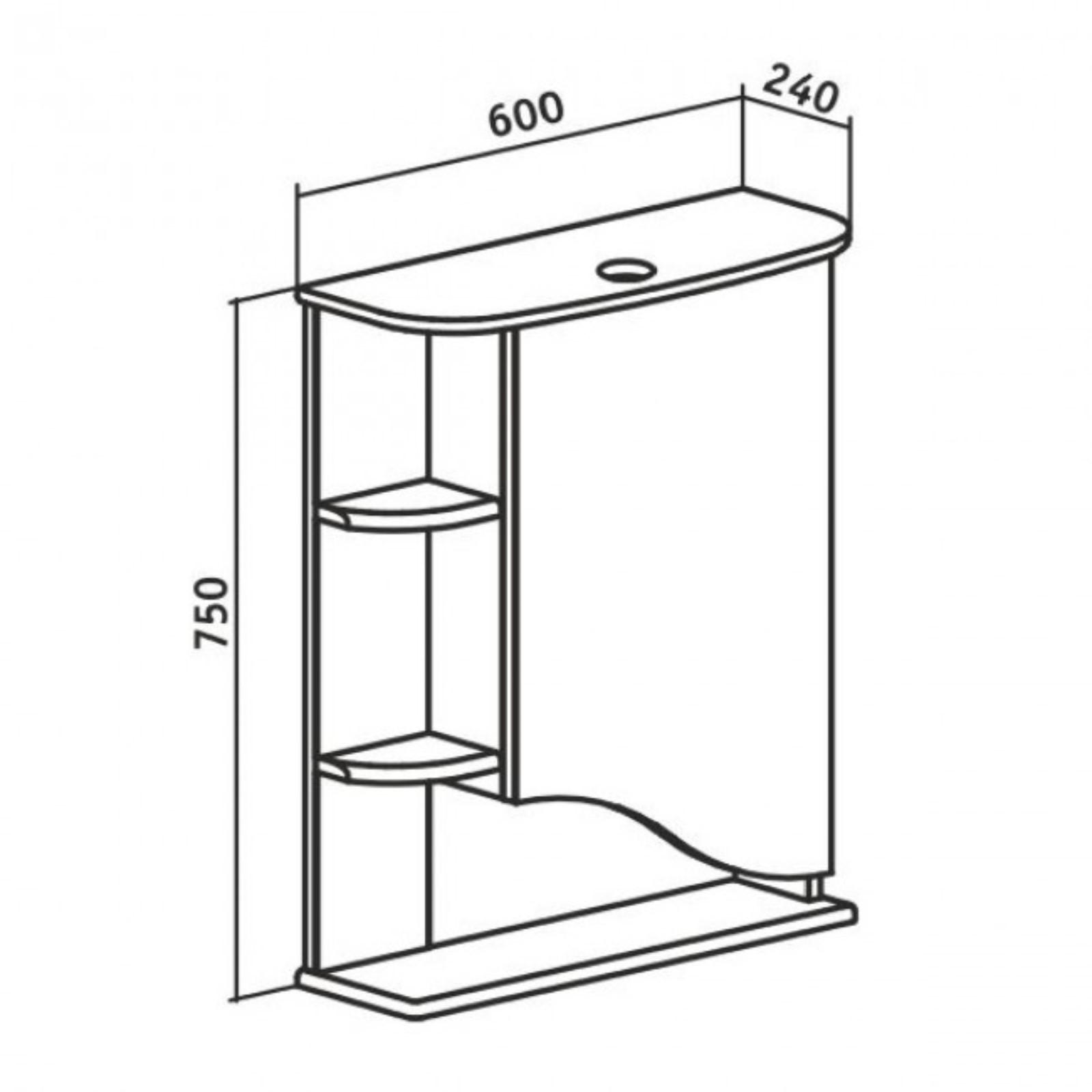 Зеркало-шкаф "Римма 60" правый 24 х 60 х 75 см