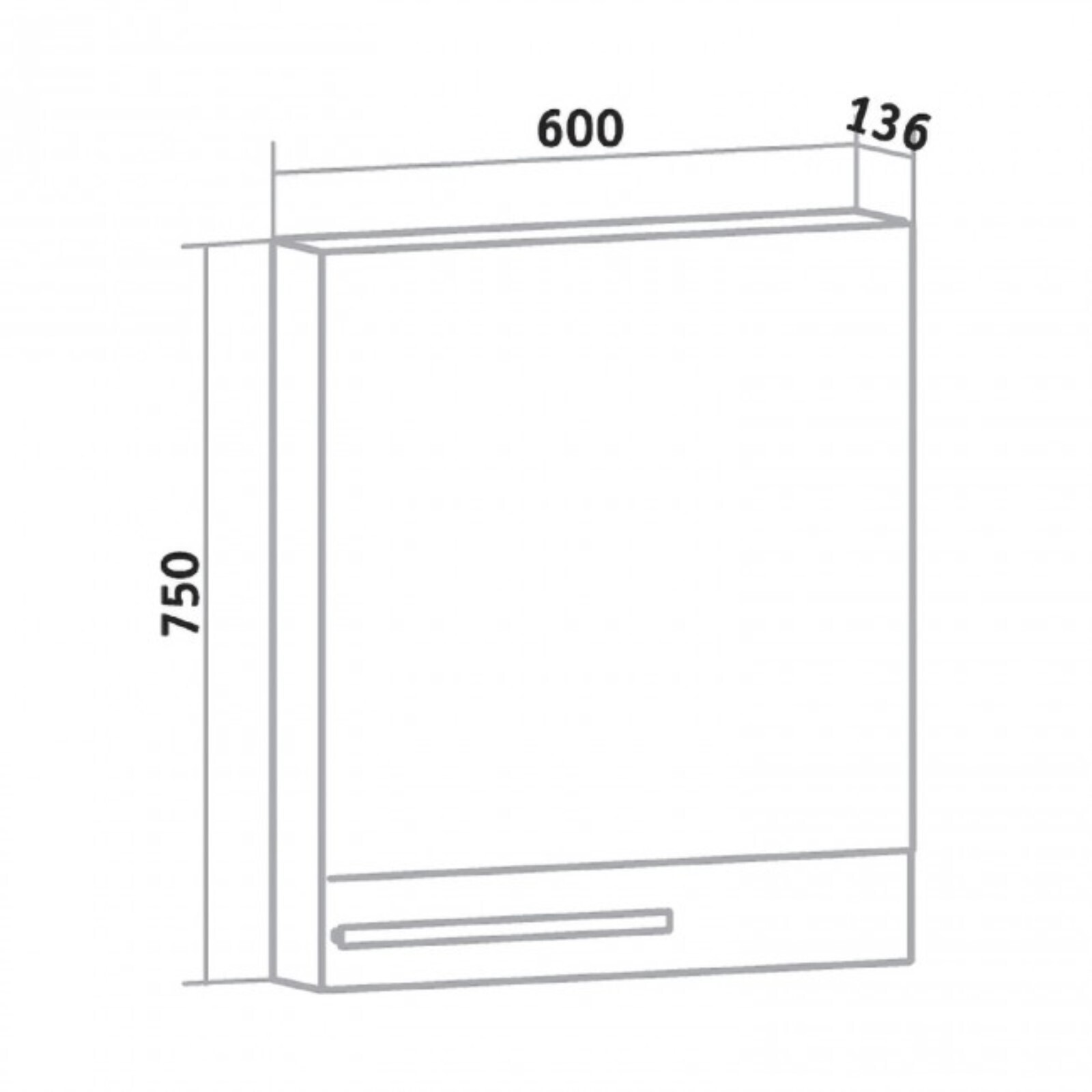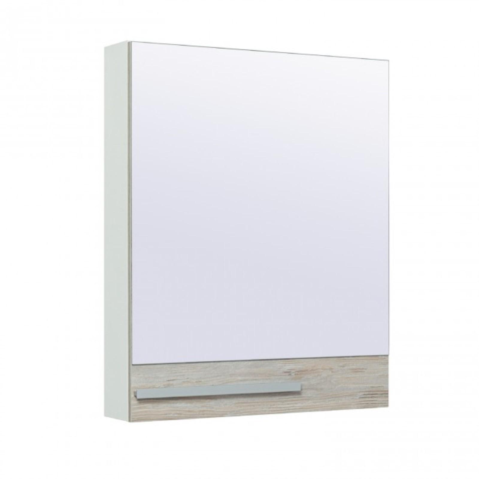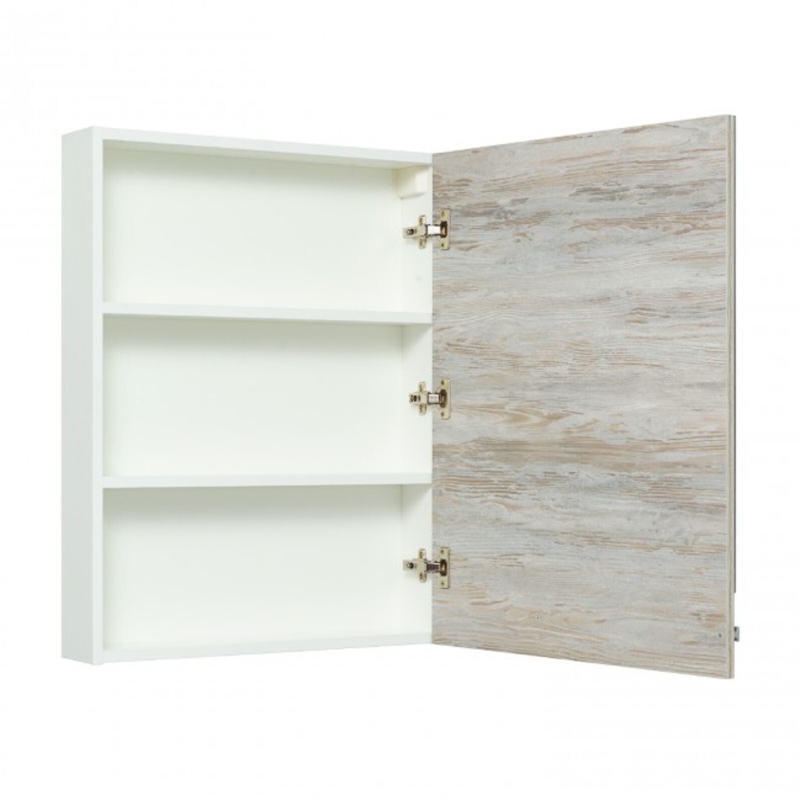Зеркальный шкаф без подсветки с одной распашной дверкой, за которой две внутренние полки.