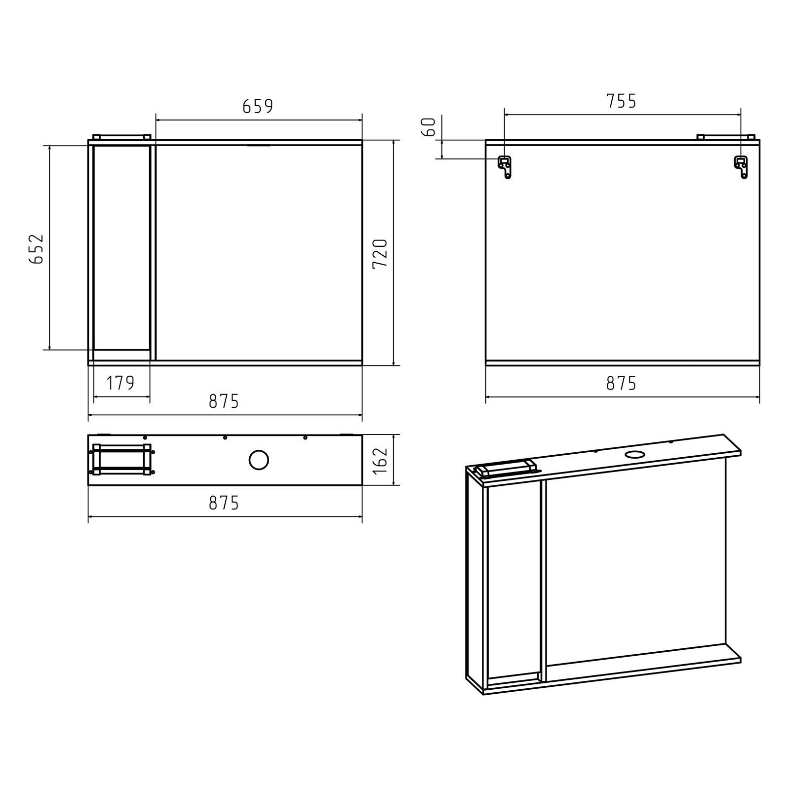 Зеркало-шкаф "Алиса 90" левое с 1 шкафчиком, белое 87,5 х 16 х 72 см