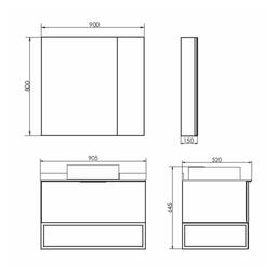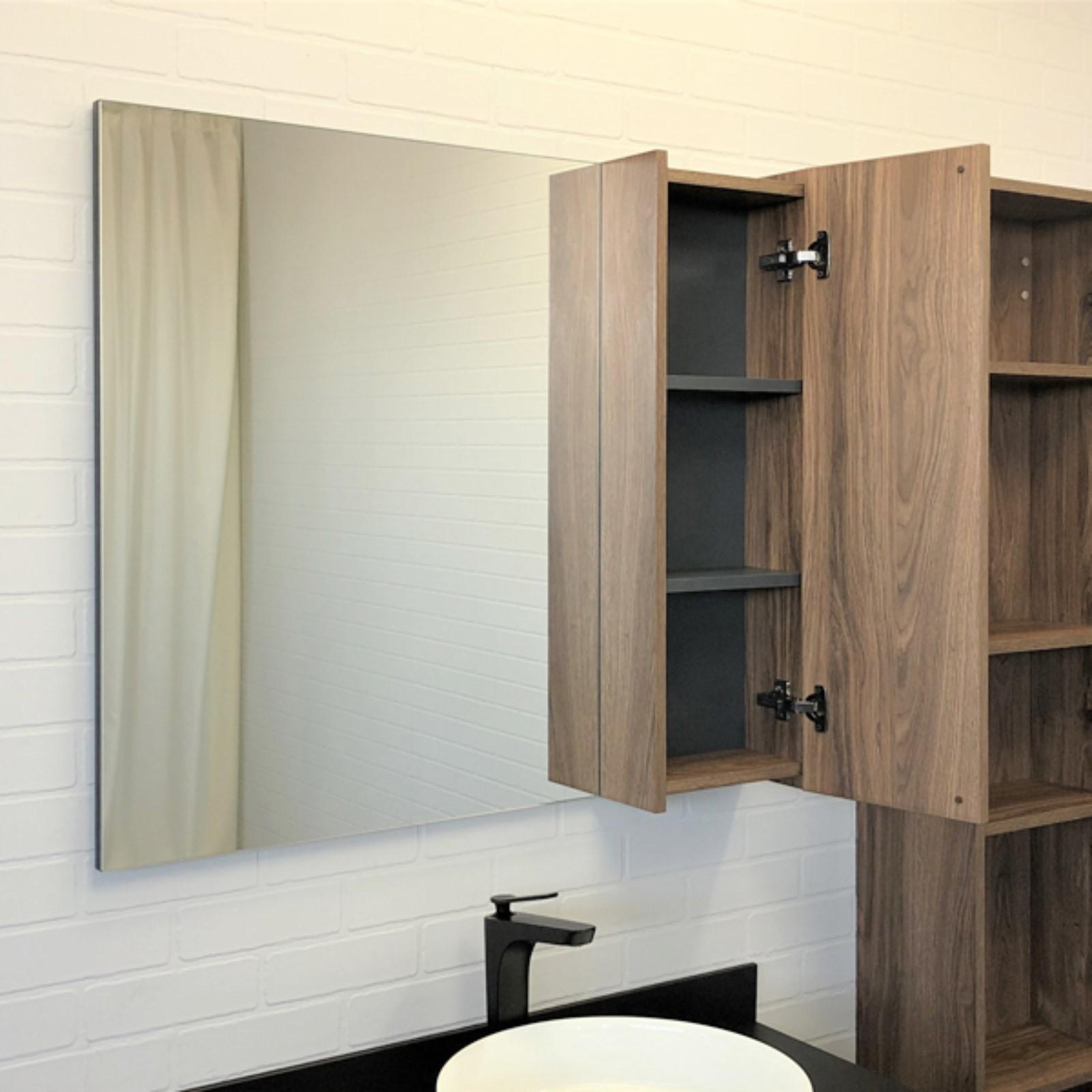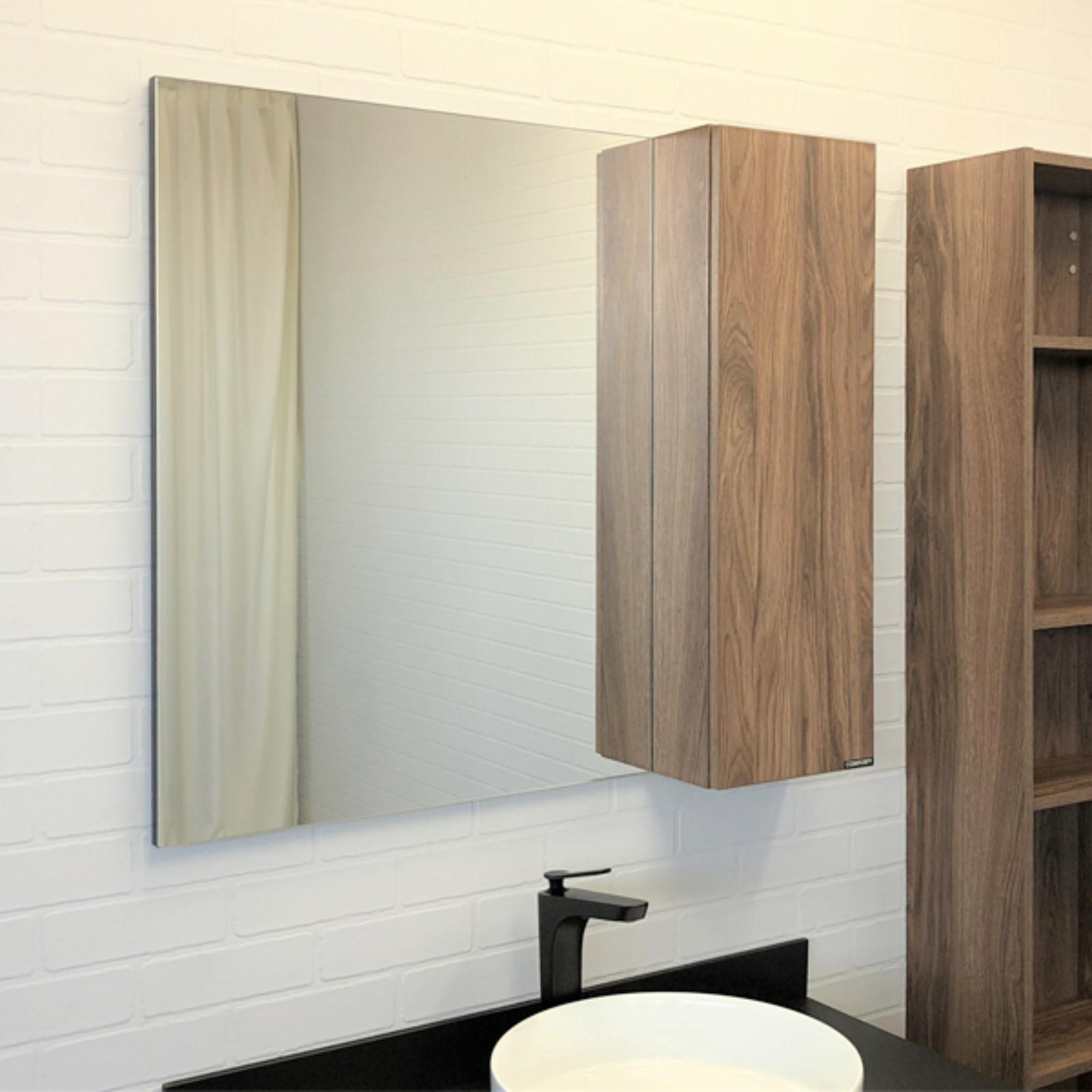 Створка оснащена системой плавного закрывания. Высококачественное зеркальное полотно с амальгамой на основе серебра. За створкой две горизонтальные полки. Зеркало универсально, может быть подвешено в правом или левом варианте путем переворачивания.