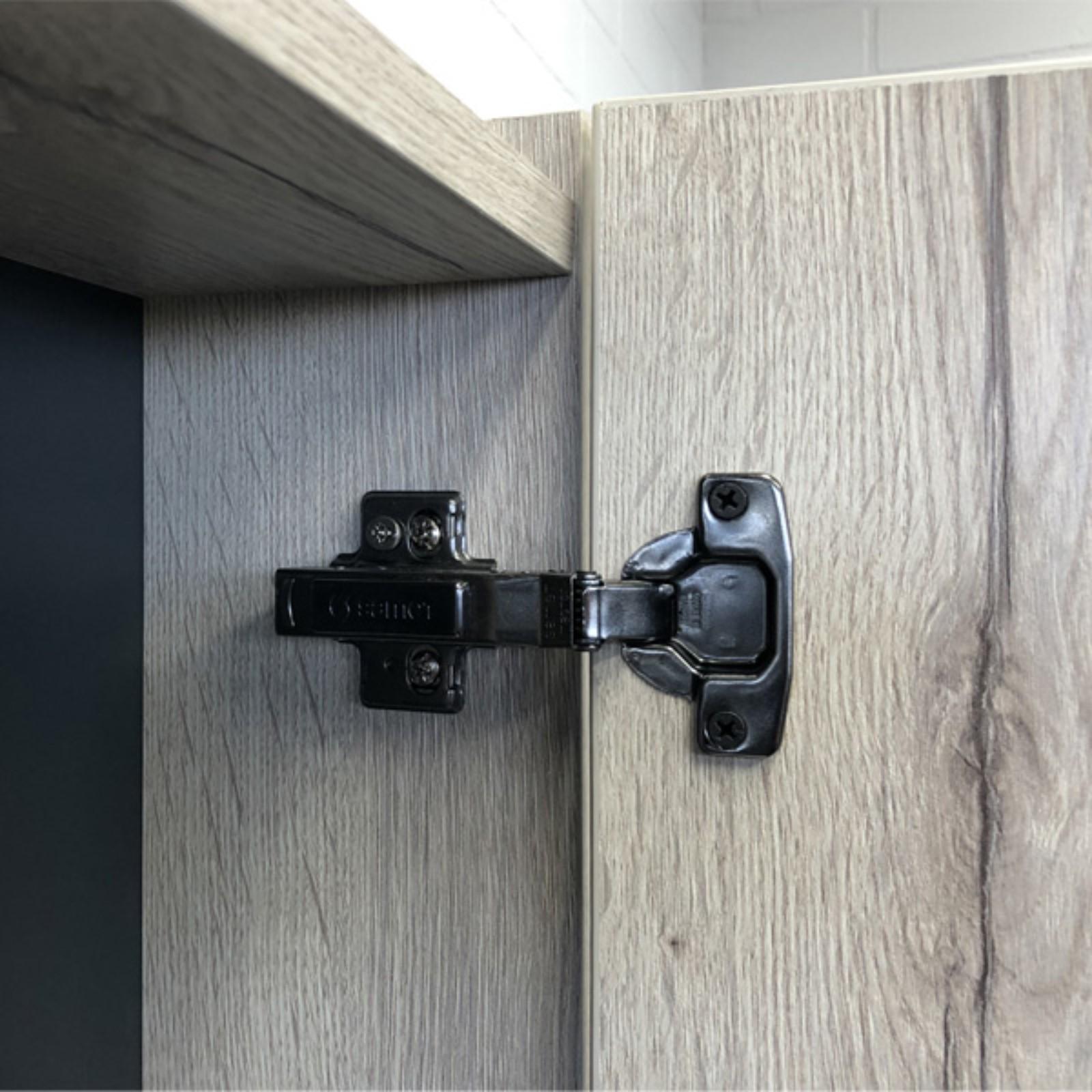 Створка оснащена системой плавного закрывания. Высококачественное зеркальное полотно с амальгамой на основе серебра. За створкой две горизонтальные полки. Зеркало универсально, может быть подвешено в правом или левом варианте путем переворачивания.