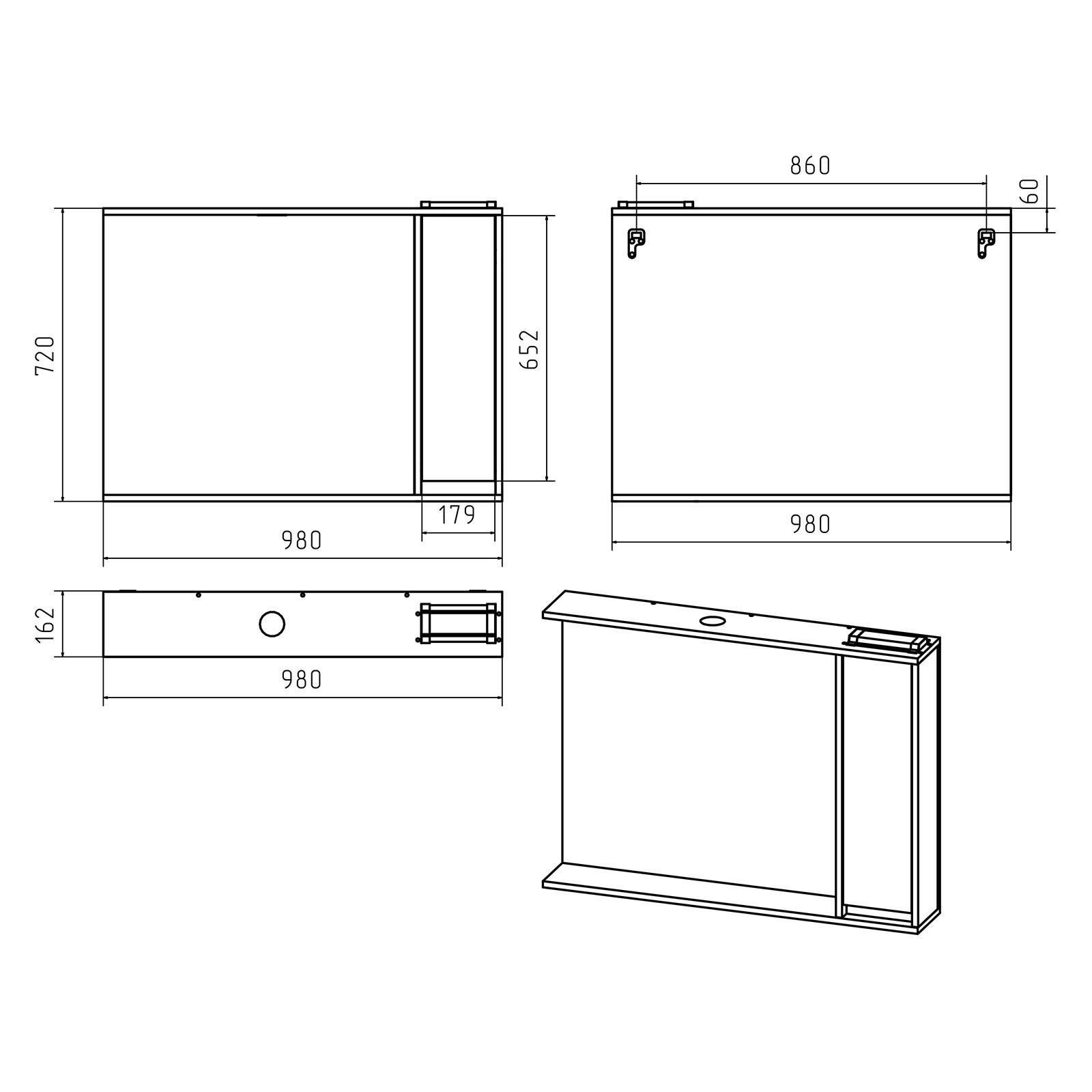 Зеркало-шкаф "Алиса 100" правое с 1 шкафчиком, белое 98 х 16 х 72 см
