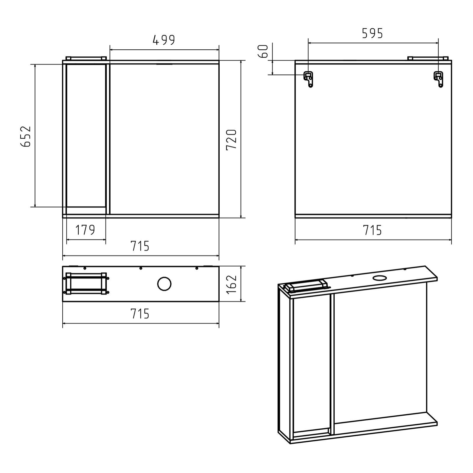 Зеркало-шкаф "Алиса 75" левое с 1 шкафчиком, белое 71,5 х 16 х 72 см