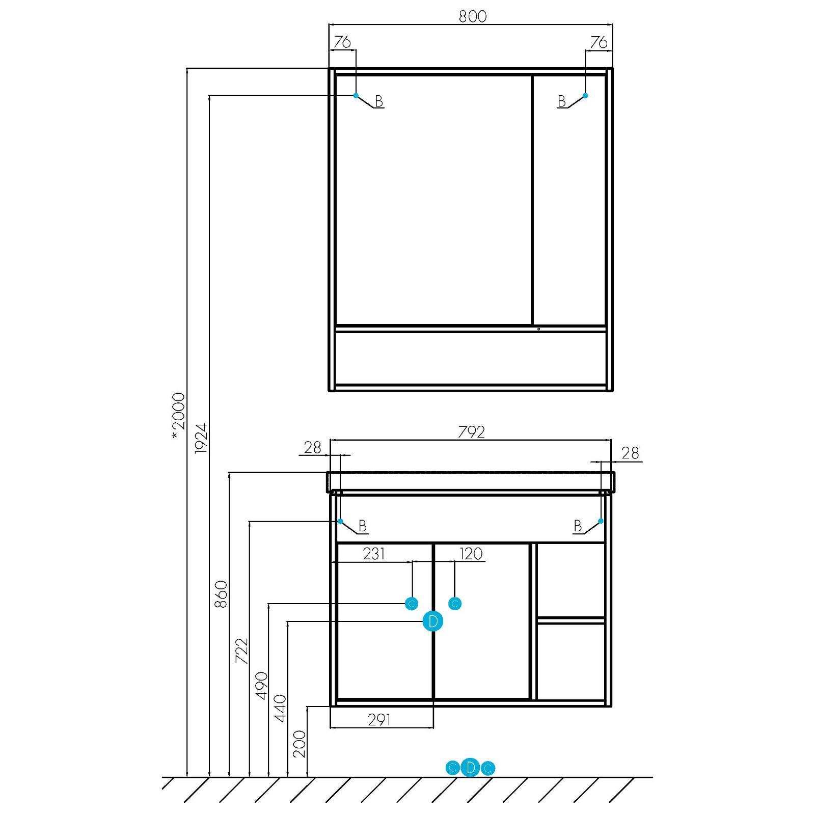 Зеркальный шкаф Aquaton Флай 80» цвет белый, дуб крафт