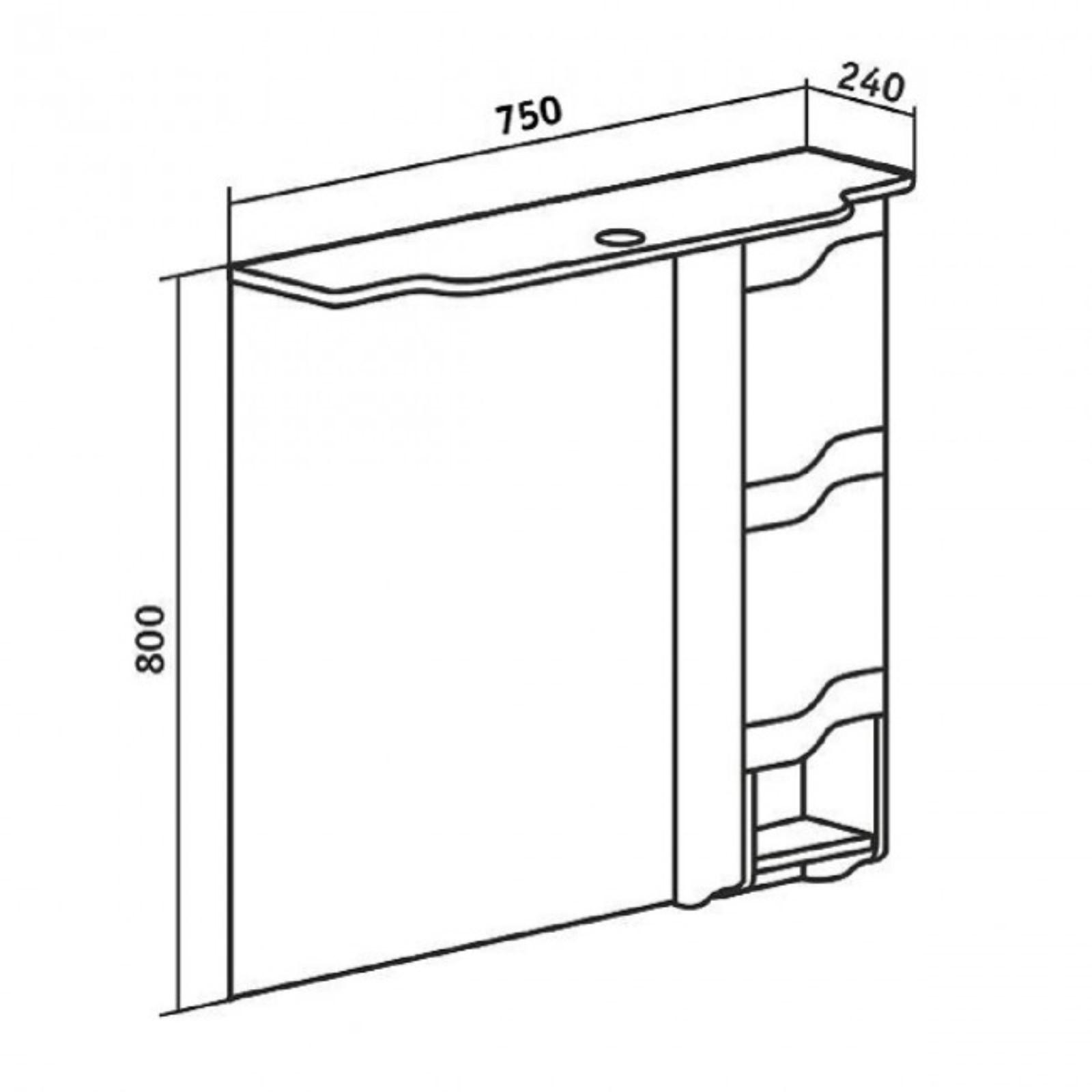 Зеркальный шкаф оборудован одним врезным светодиодным светильником 220В и розеткой с выключателем.