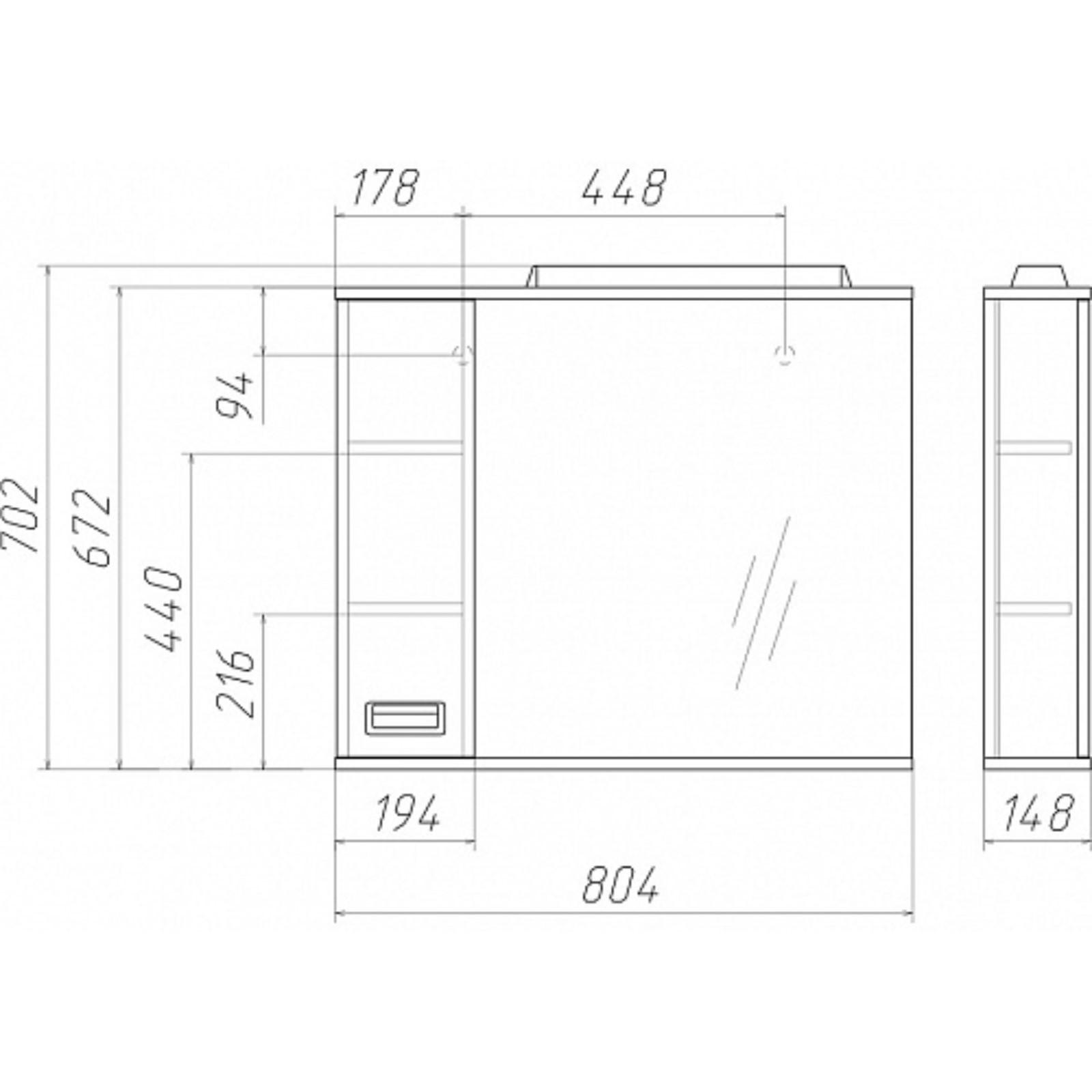 Шкаф-зеркало Cube 80 Эл. левый Домино