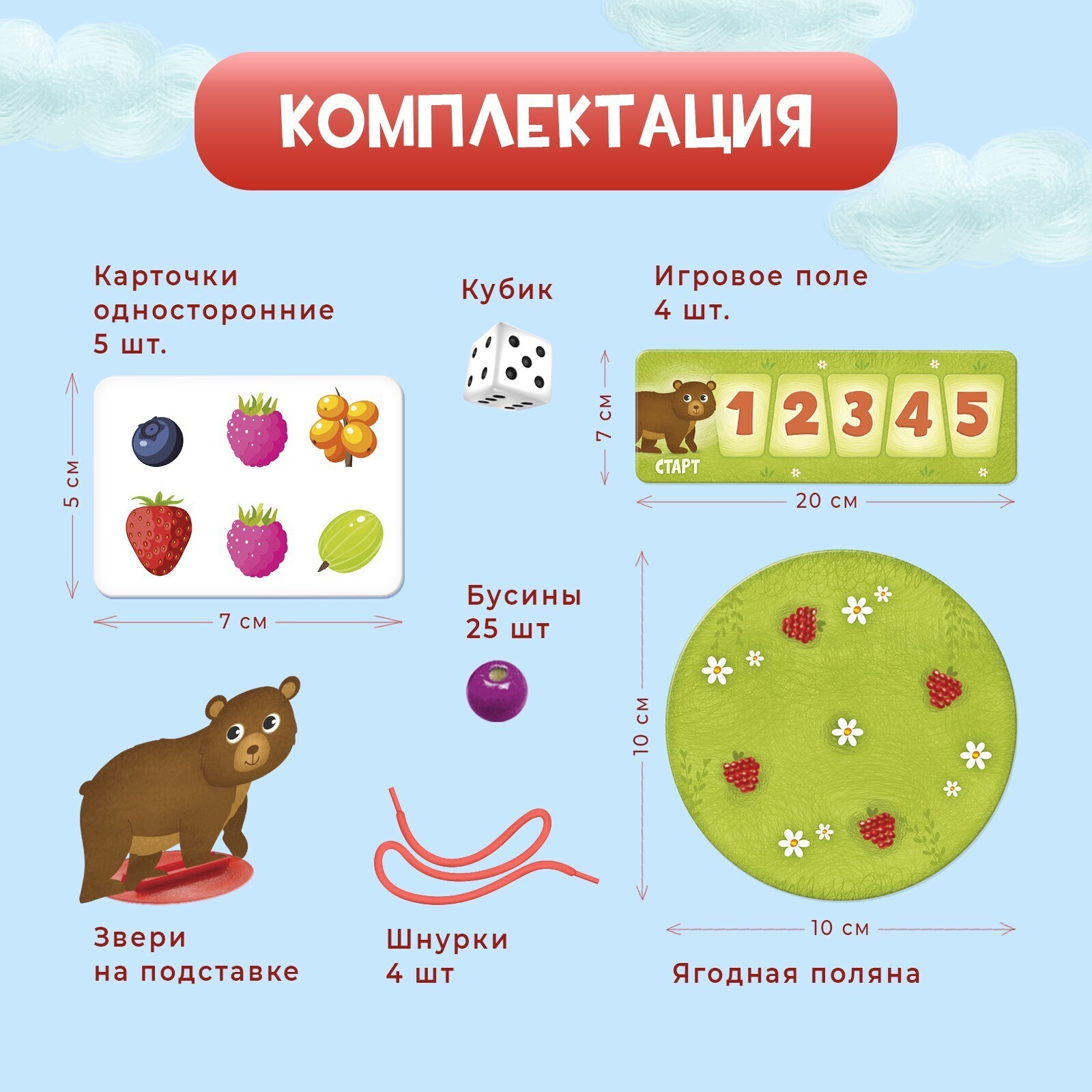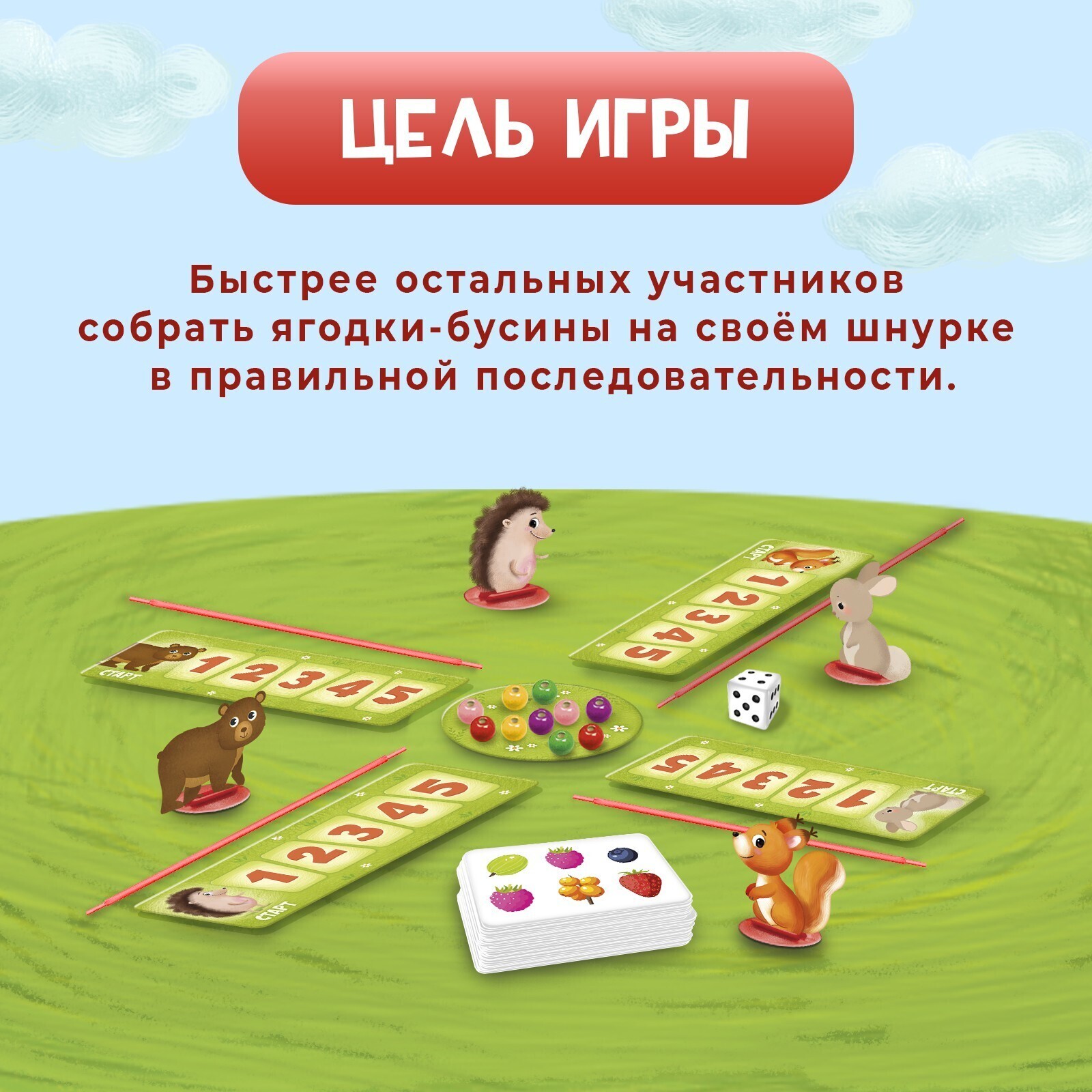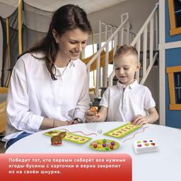 Победит тот, кто первым соберёт все нужные ягоды-бусины с карточки. И — главное — закрепит их на своём шнурке в верной последовательности.