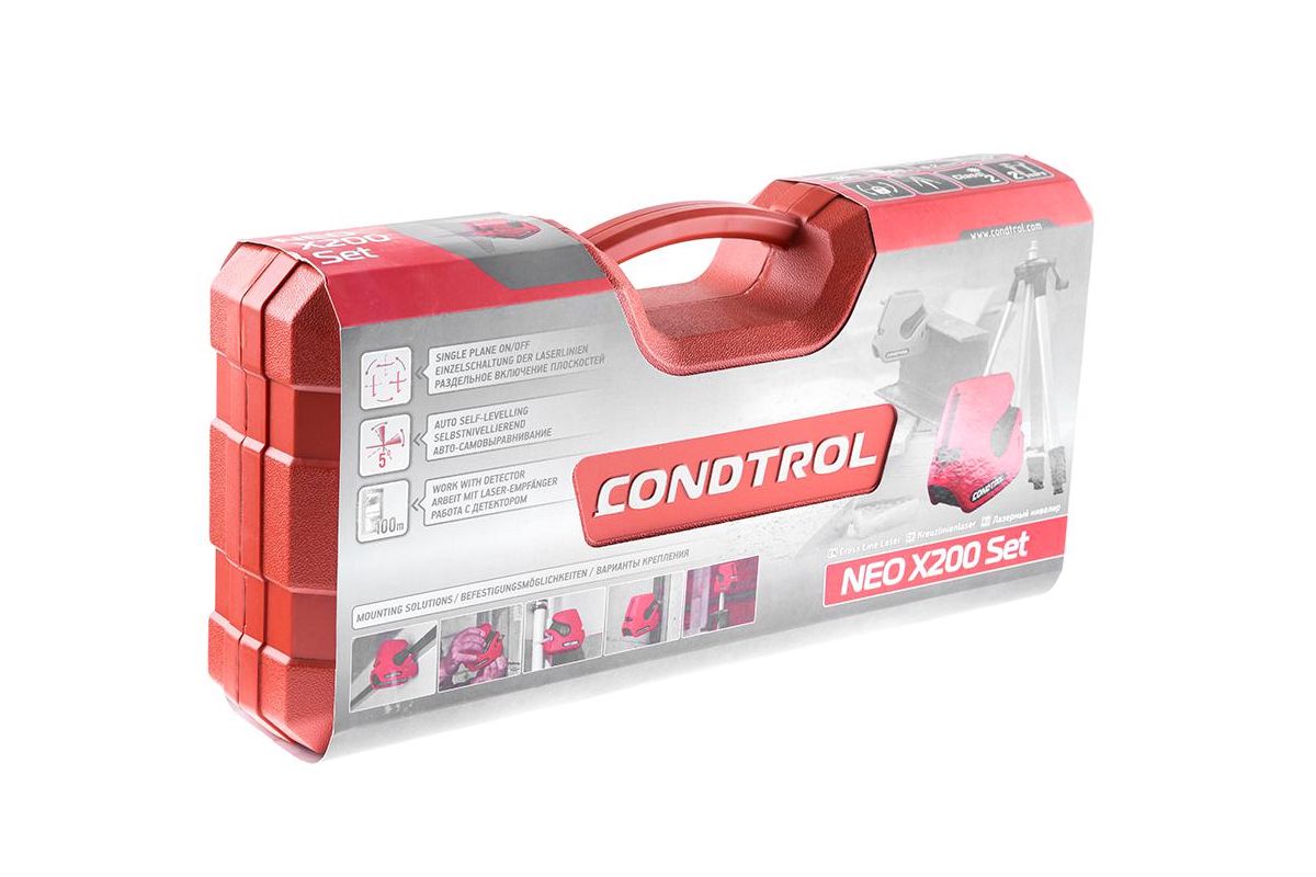 CONDTROL NEO X200 set – профессиональный лазерный нивелир в расширенной комплектации. Строит горизонтальную и вертикальную линию. Подходит для строительства и отделочных работ. Без приёмника работает в диапазоне до 30 м, с приёмником – до 60 м. В импульсном режиме луч хорошо видно на улице.