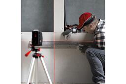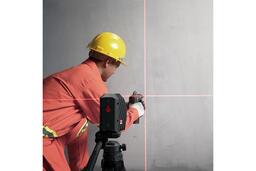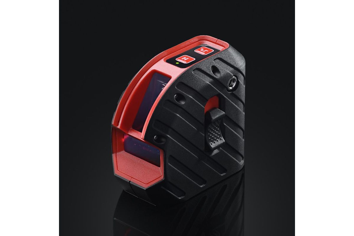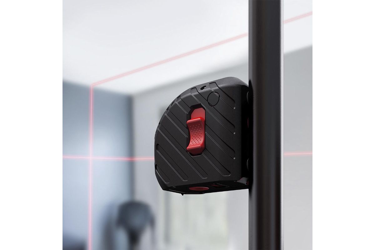 Нивелир оснащён двумя лазерными лучами. Проецирует по одной горизонтальной и вертикальной линии.