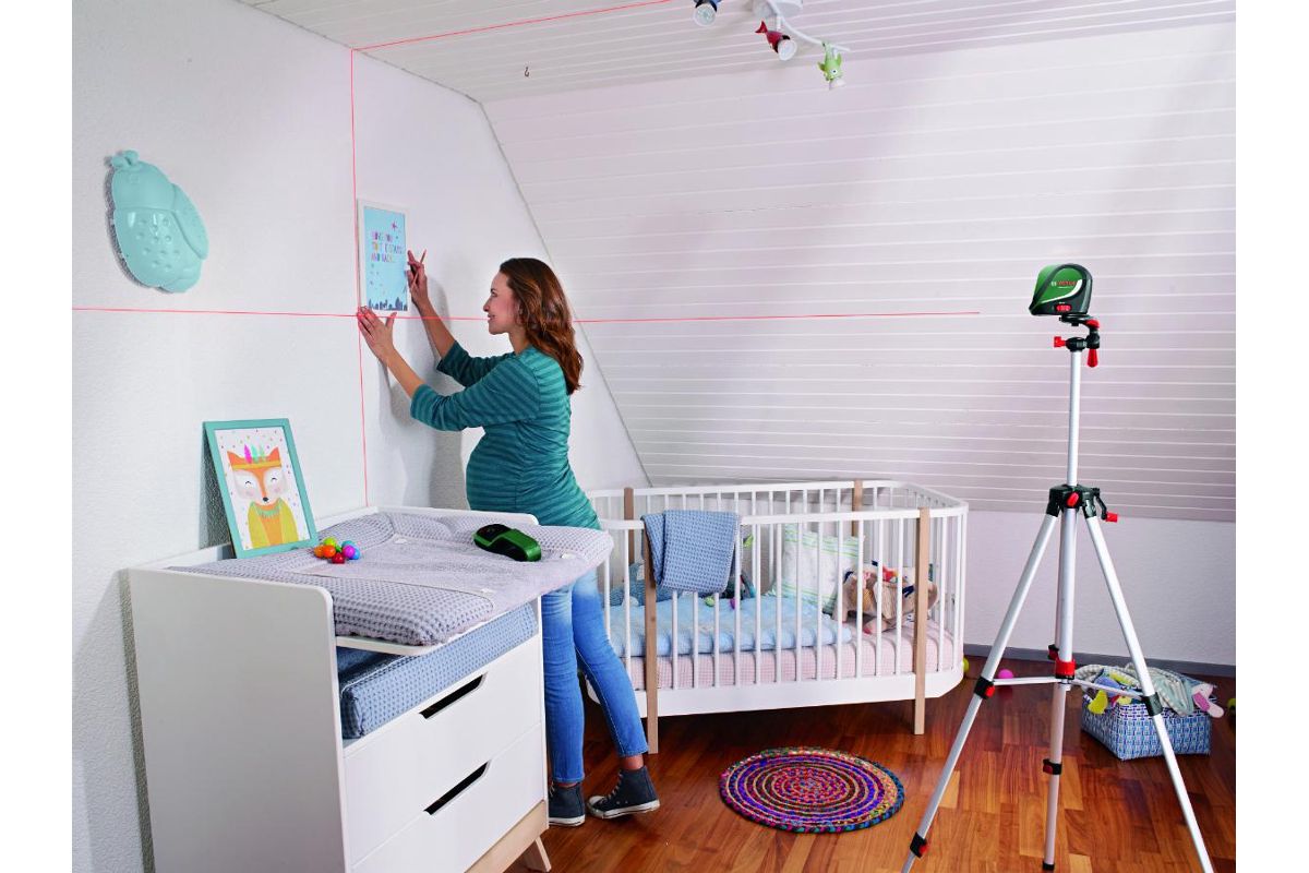 BOSCH UniversalLevel 2 Set – лазерный построитель плоскостей для бытового ремонта и декорирования помещений. Проецирует лазерный крест и две точки отвеса (сверху и снизу). Без приёмника работает на расстоянии до 10 м. Поставляется со штативом.