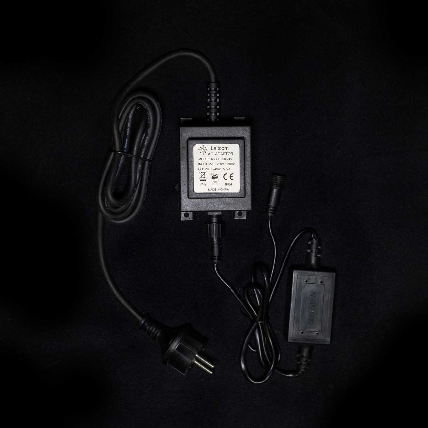 Трансформатор 60W с Выпрямителем для Нитей 24В, до 1000 LED, Провод Черный Каучук, IP65