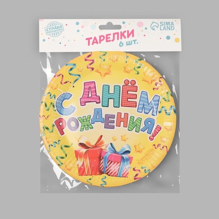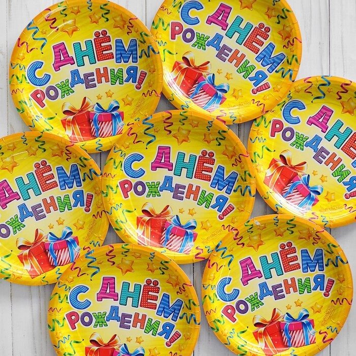 Набор бумажных тарелок "С днём рождения", 18 см, 6 шт.