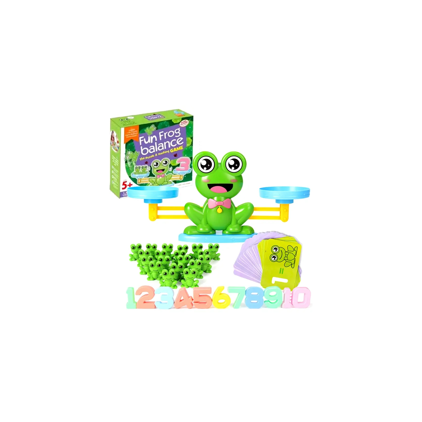 Навчальна настільна гра для дітей допоможе Вашому малюку з легкістю та в ігровій формі вивчити числа, цифри та рахунок. Гра є математичні ваги у формі жаби. У кожної цифри своя вага, яка дорівнює вазі відповідної кількості фігурок жаблять. Для навчальних завдань у наборі є картки з прикладами та цифрами.