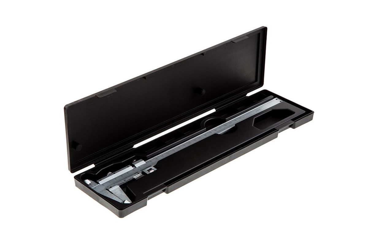Удобное хранение и транспортировка — штангенциркуль упакован в прочный пластиковый кейс.