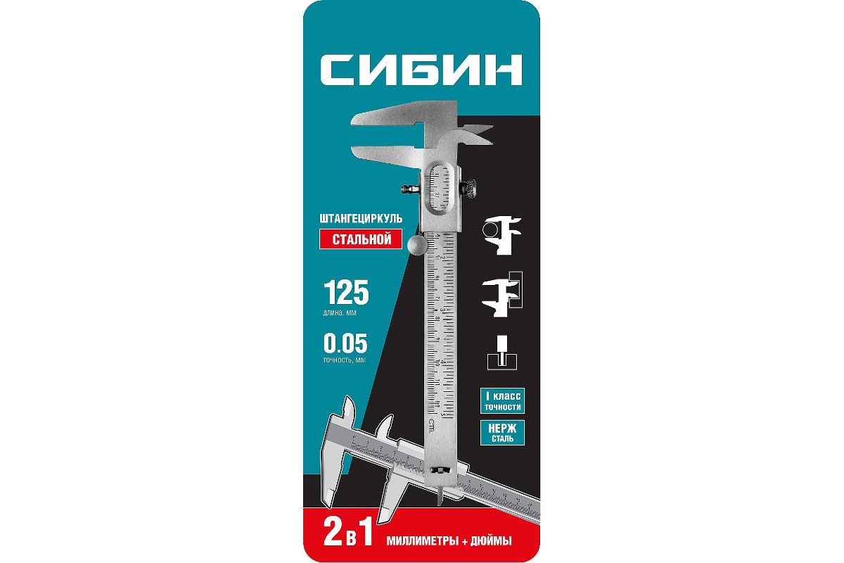 Штангенциркуль СИБИН 3443 стальной, 125 мм,