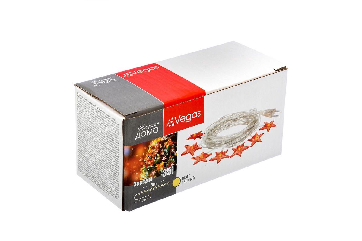 Гирлянда VEGAS Звезда 55097 красная 30 красных мигающих led, зеленый провод 3м, 20*20 см,