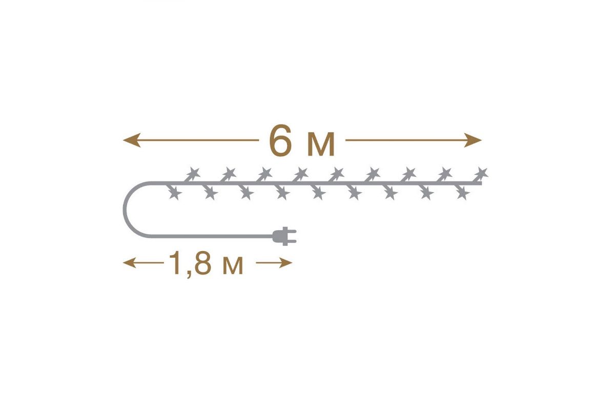 Размер звезды 20х20 см, количество светодиодов 30, длина провода 3м.