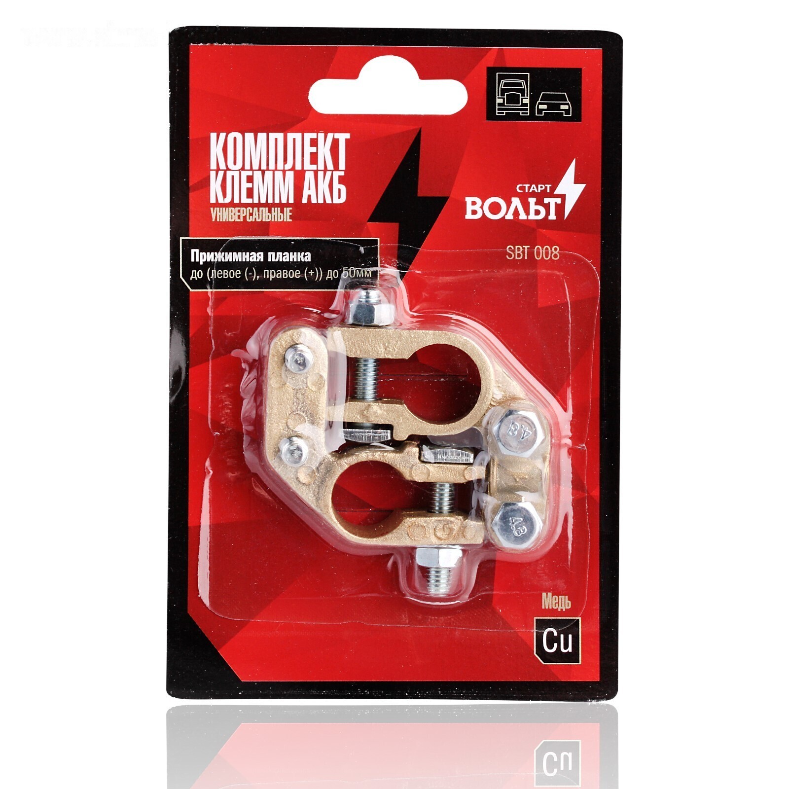 Клеммы АКБ в комплекте медь, прижимная планка SBT 008, STARTVOLT SBT 008