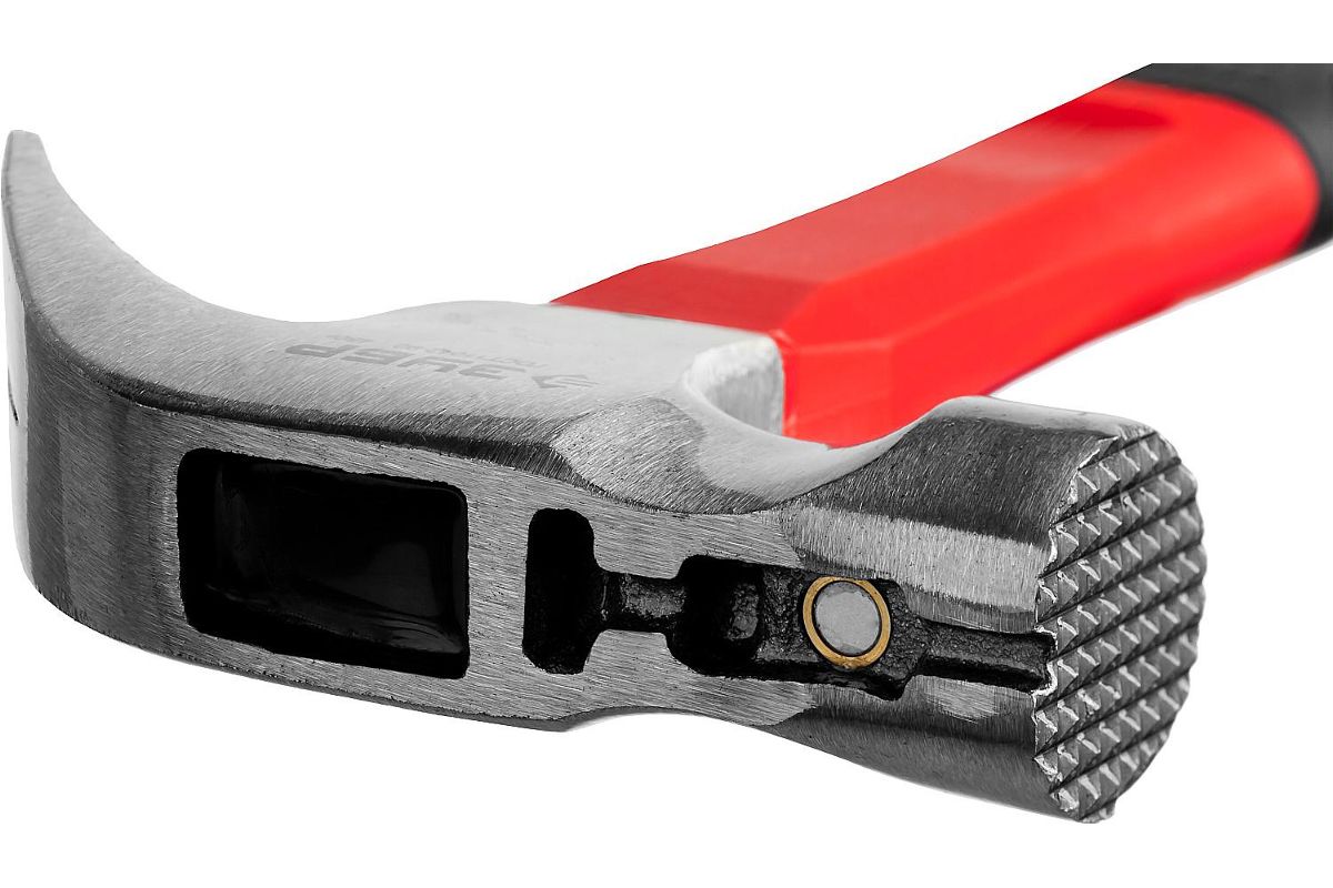 Молоток-гвоздодер ЗУБР 20356-450 Мастер 450 г с фиберглассовой рукояткой, боек c магнитом