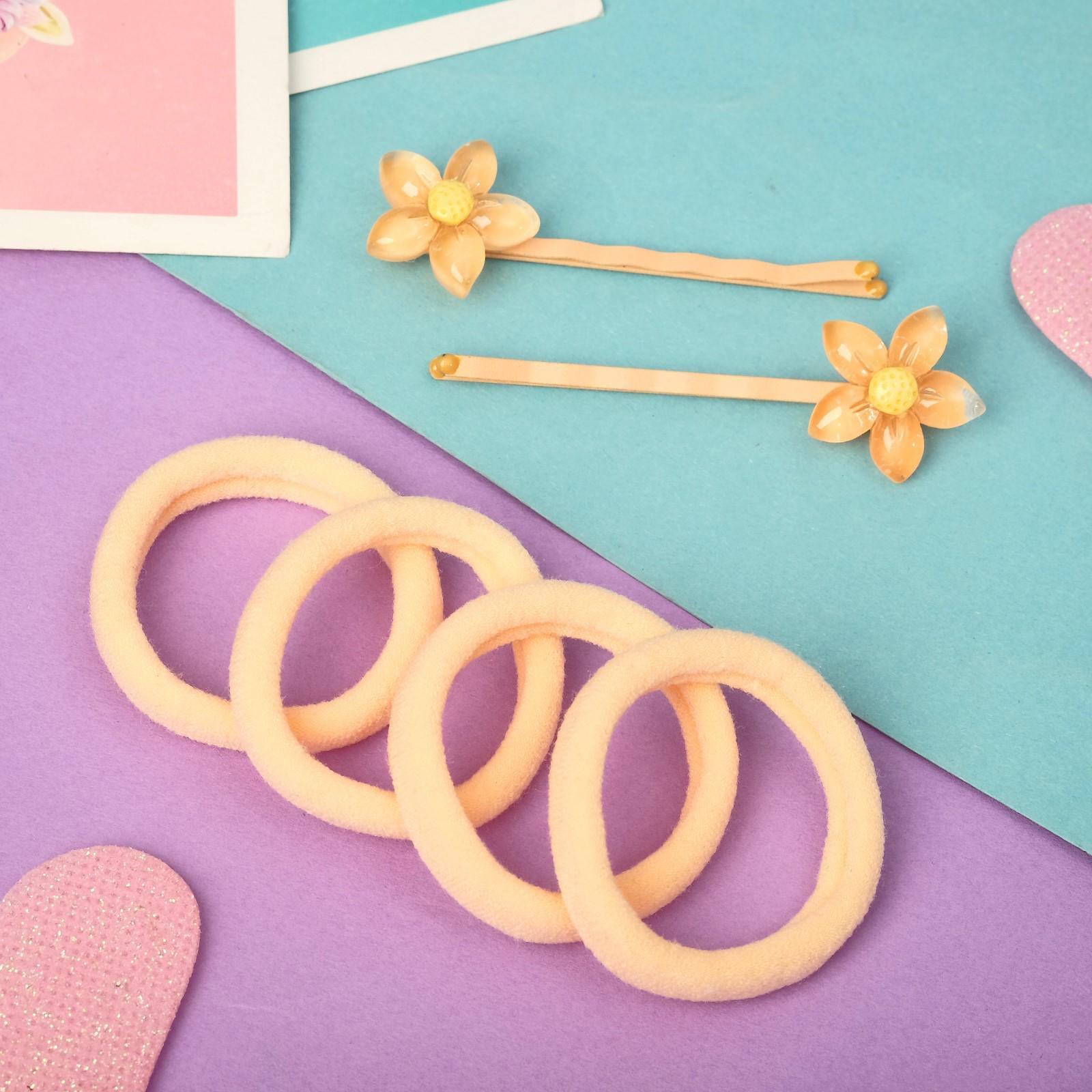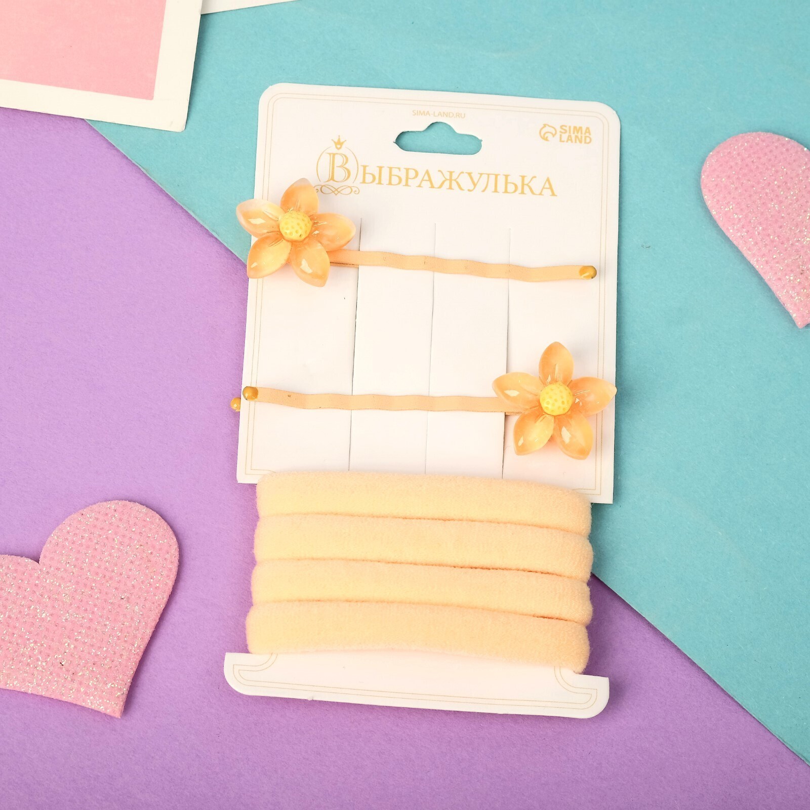 Набор для волос "Сандра" (4 резинки, 2 невидимки 5,5 см) цветок, оранжевый