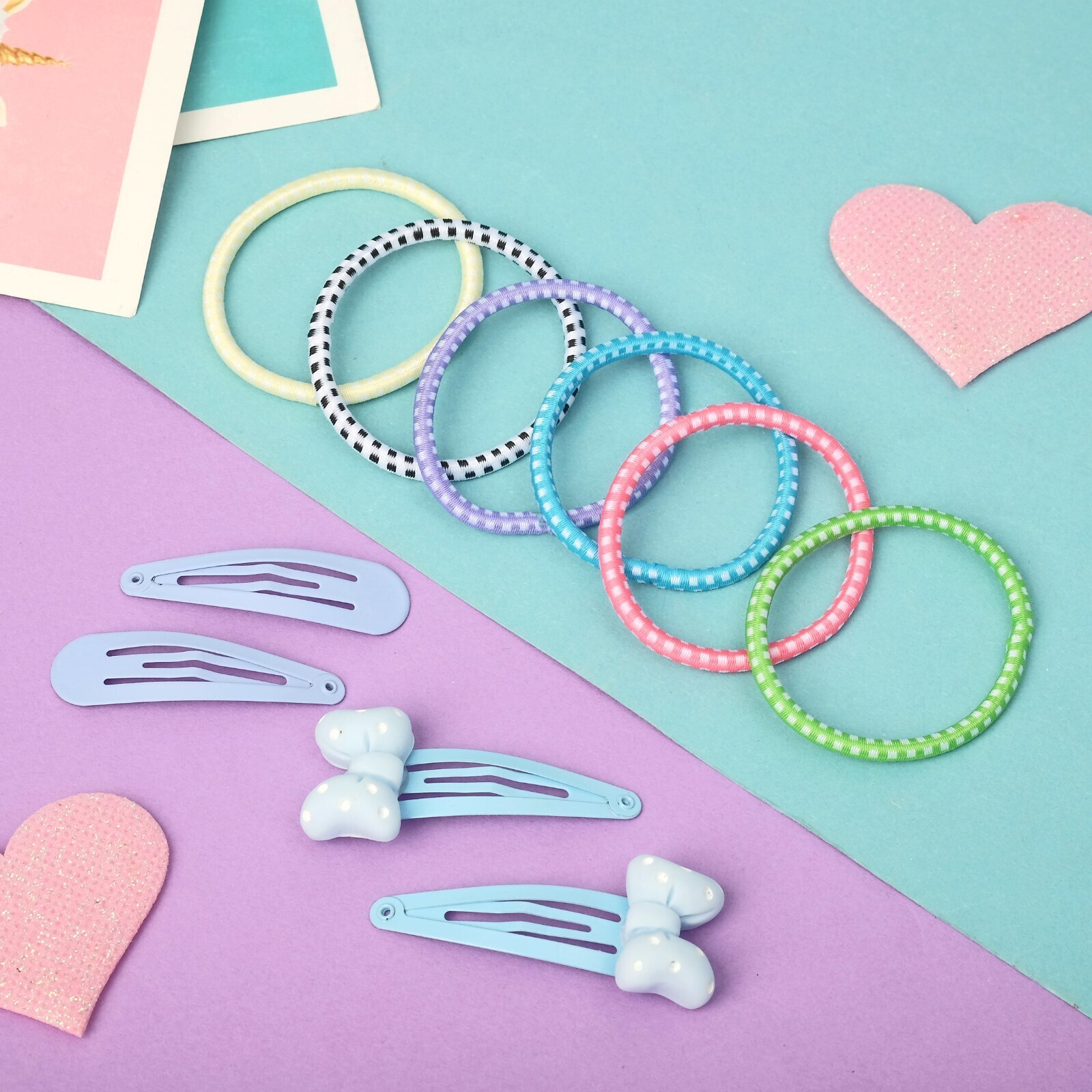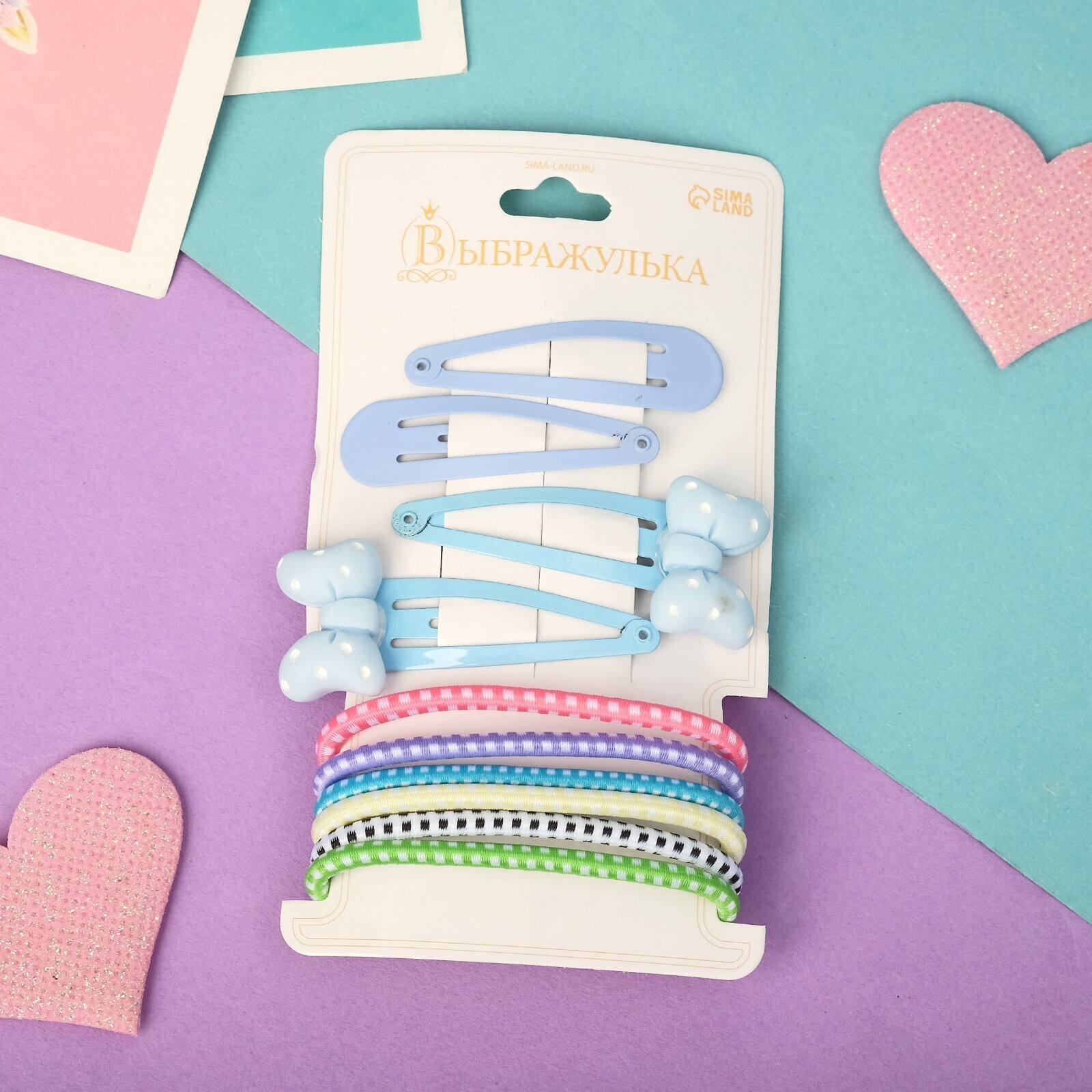 Набор для волос "Оливия" (6 резинок, 4 невидимки 4,5 см) голубой бантик горох