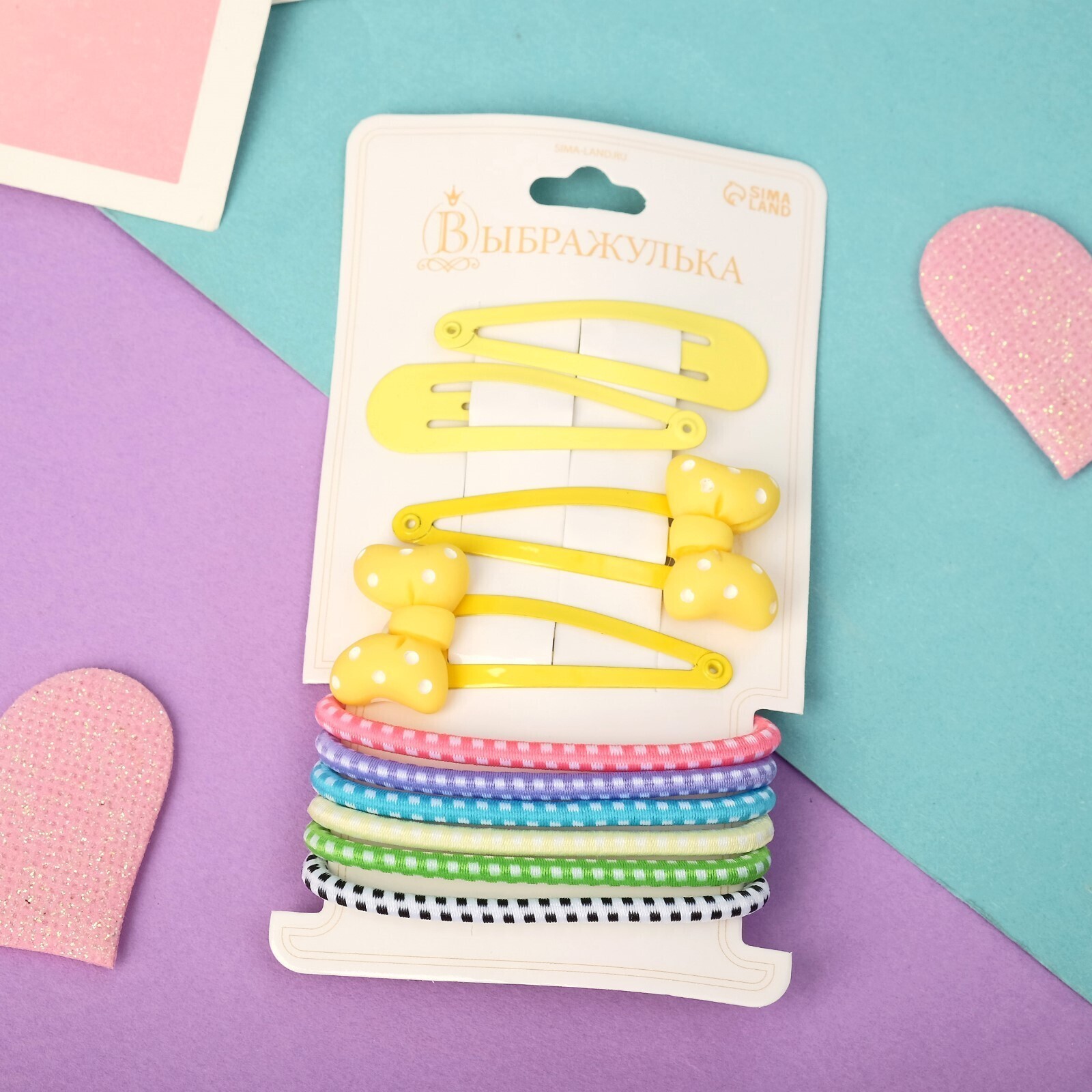 Набор для волос "Оливия" (6 резинок, 4 невидимки 4,5 см) жёлтый бантик горох