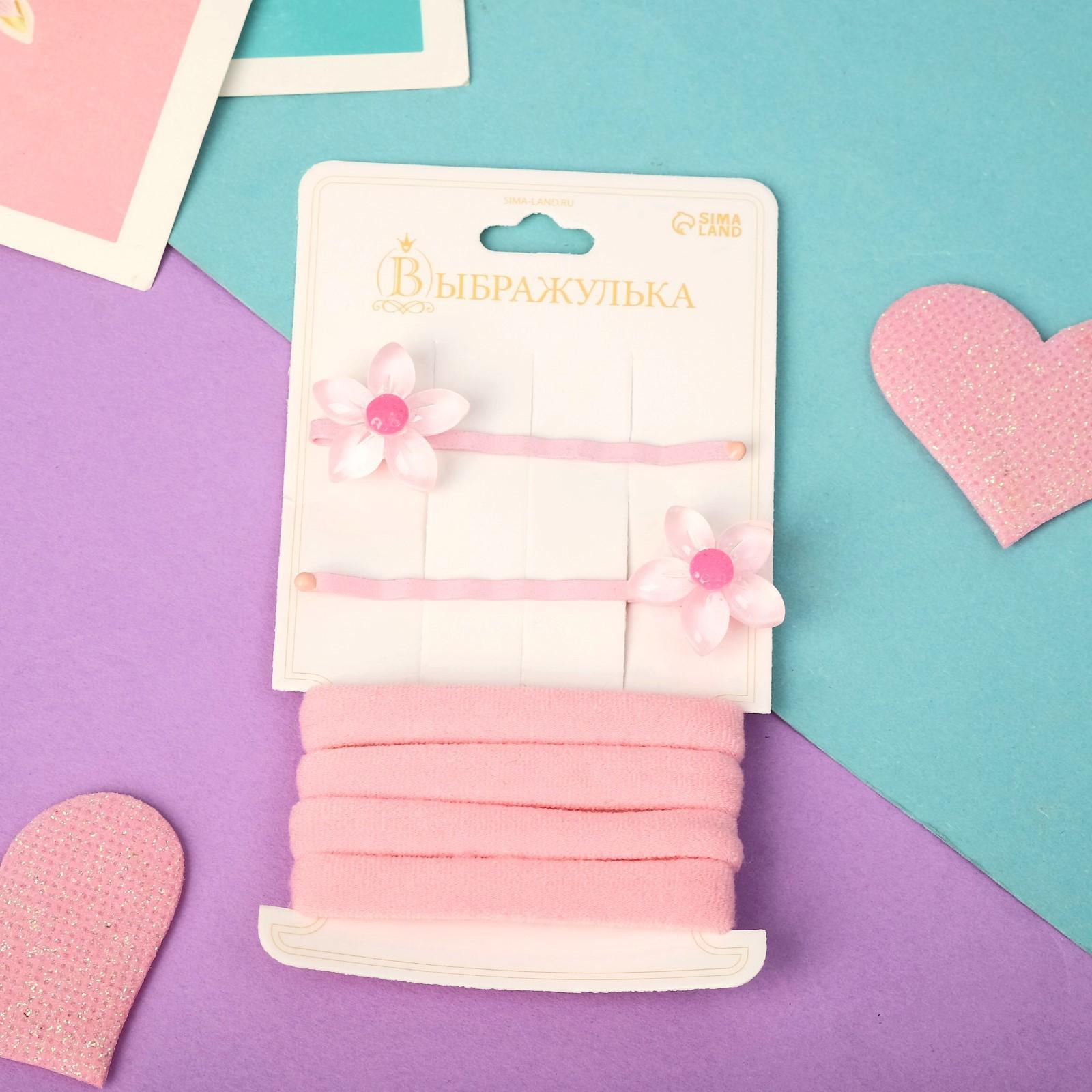 Набор для волос "Сандра" (4 резинки, 2 невидимки 5,5 см) цветок, розовый