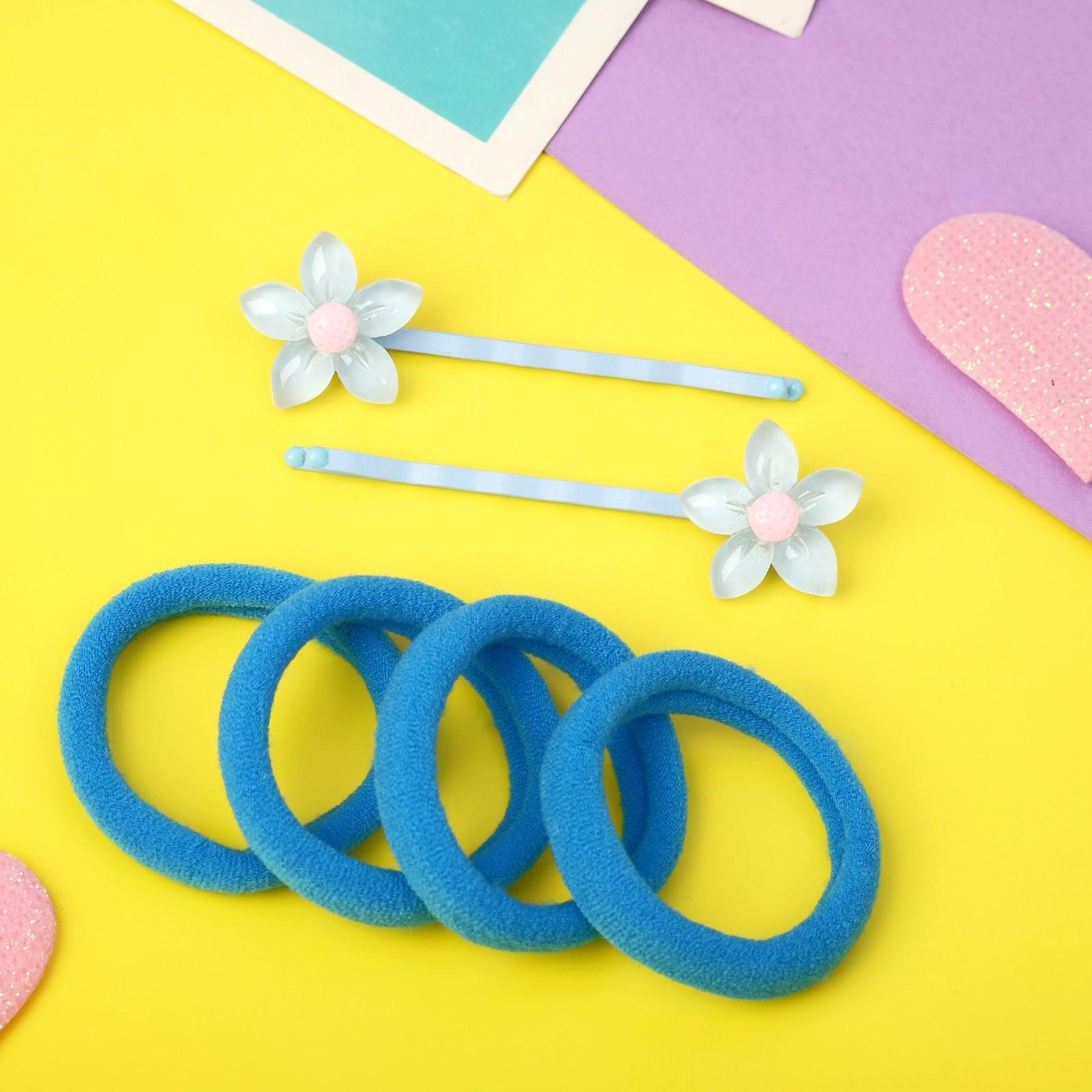 Набор для волос "Сандра" (4 резинки, 2 невидимки 5,5 см) цветок, голубой
