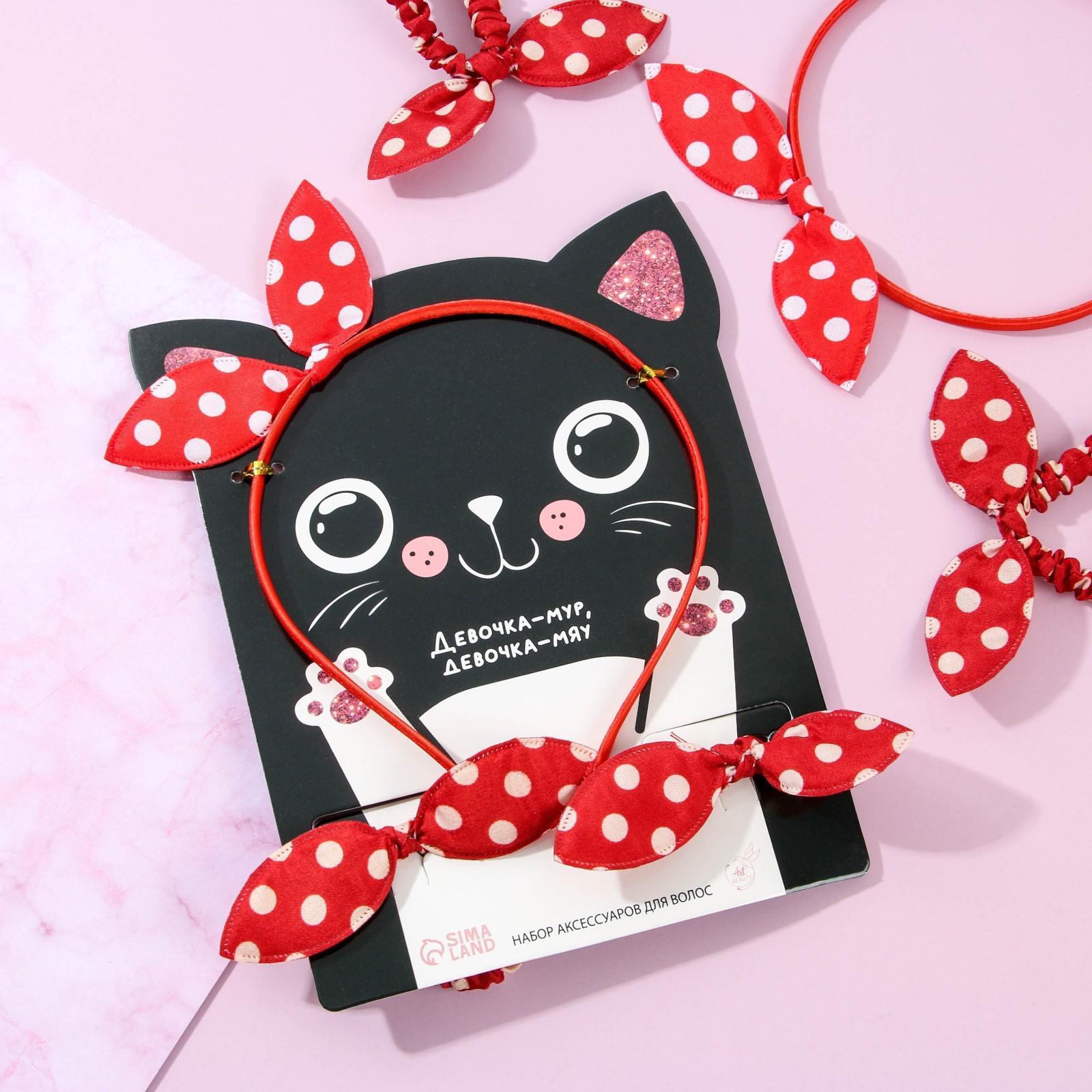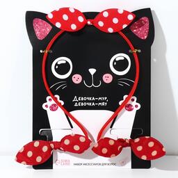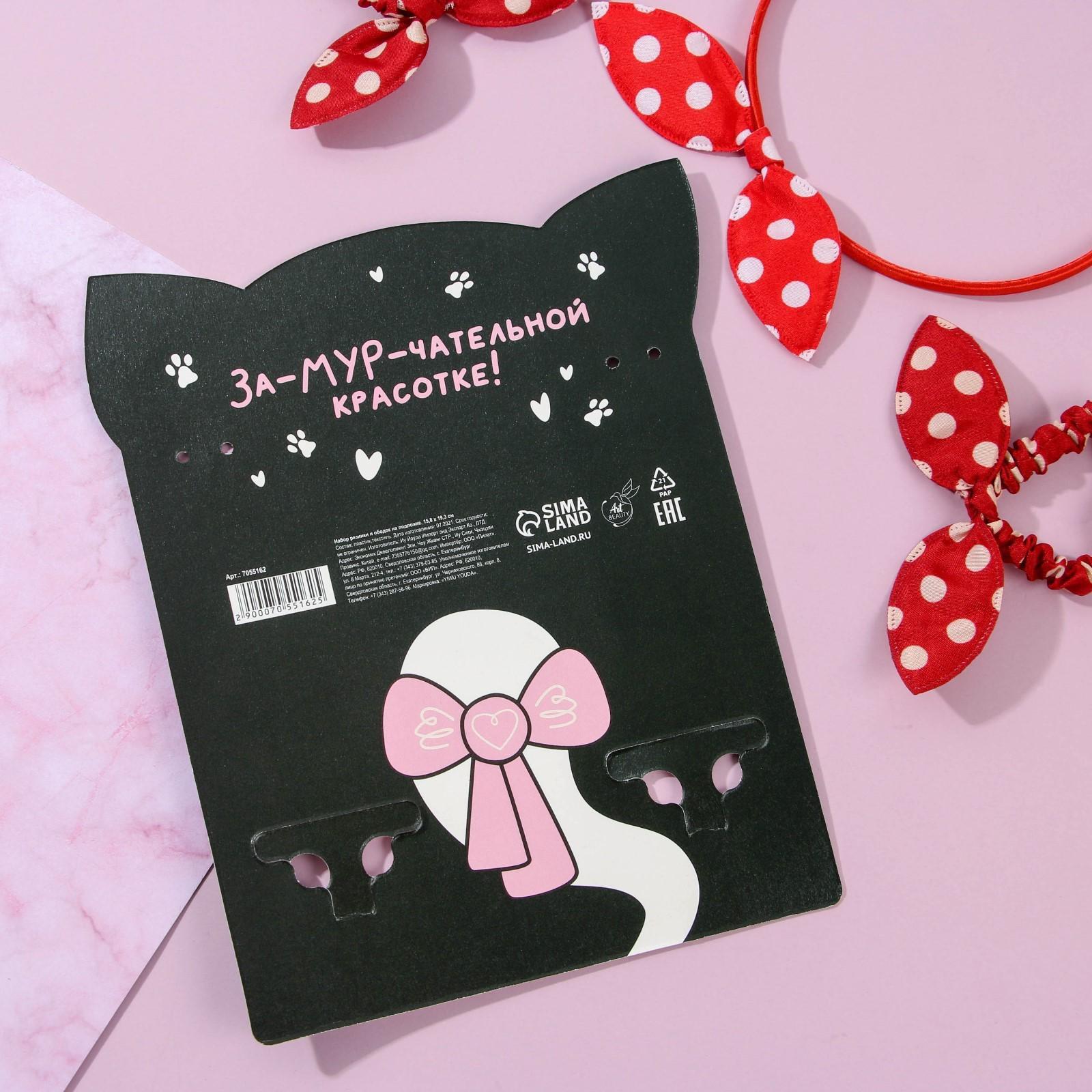 Набор резинки и ободок на подложке "Девочка-мур, девочка-мяу"